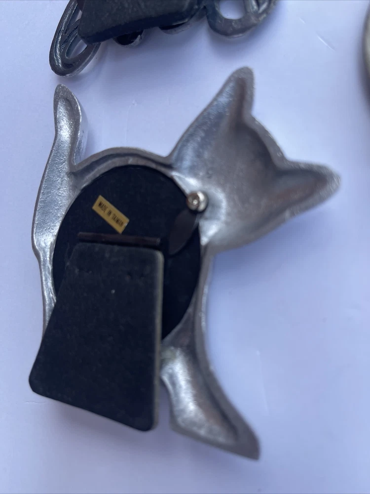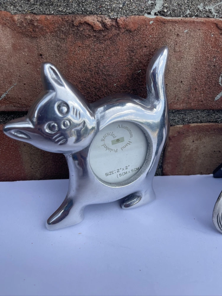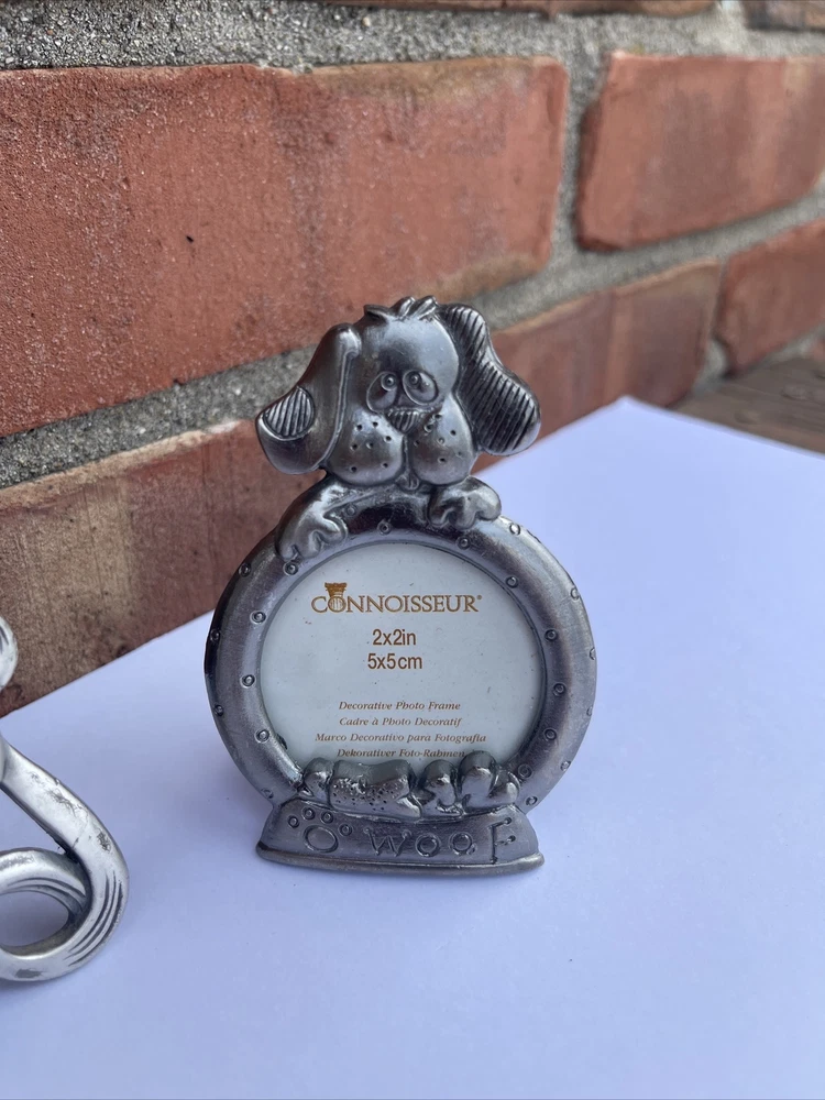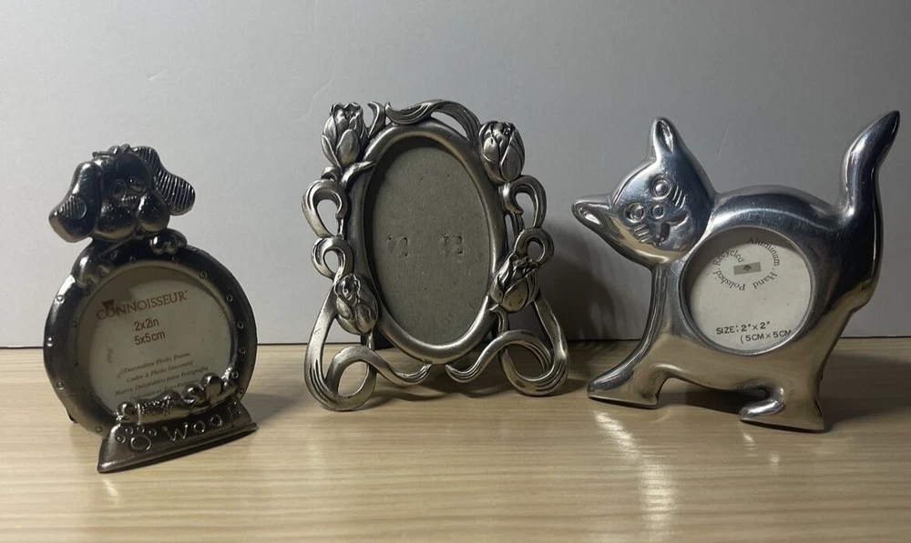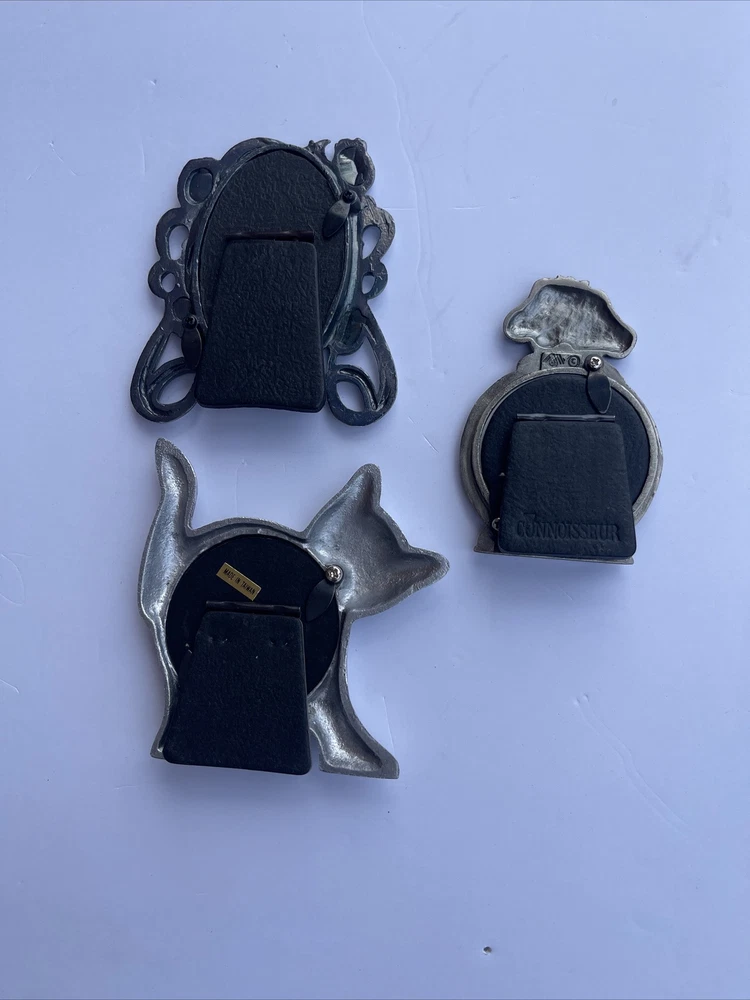 Lot 3 Mini Photo Frames Easels Cat Dog Floral Oval Silver Connoisseur Aluminum