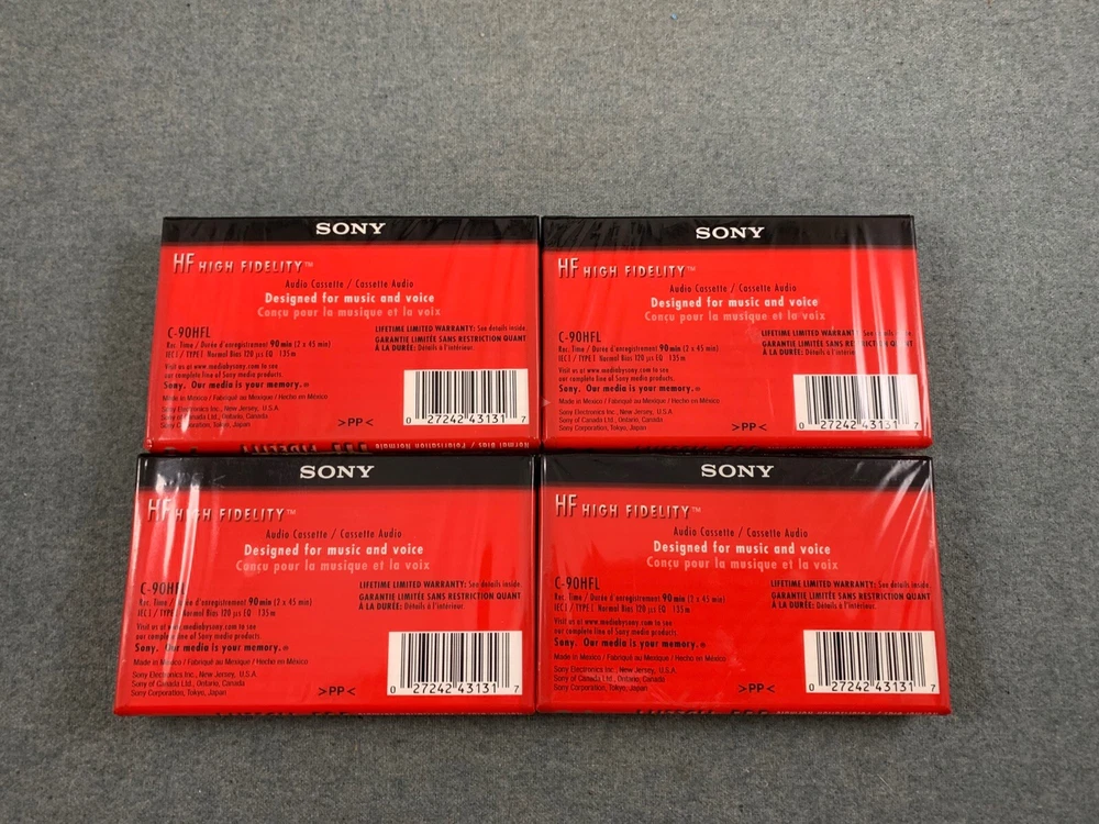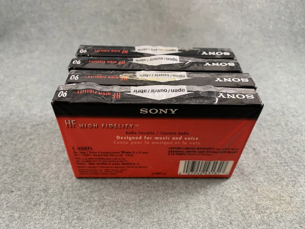 Payment Within 48 Hours of Transaction's End. Please Ask Any Questions Before Bidding. Please Read Entire Description. Listing is for a lot of 4 SONY HF 90 minute blank cassette tapes. These are new old stock and sealed. Please see pics for more descriptions of items, and use the eBay Photo Enlarger to see them better. If you choose not to leave me a 5 for shipping, please consider how your item was packaged. From a smoke free home. Thanks for looking!