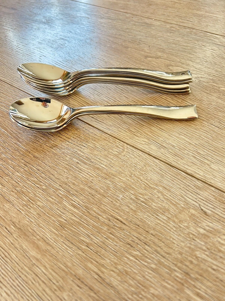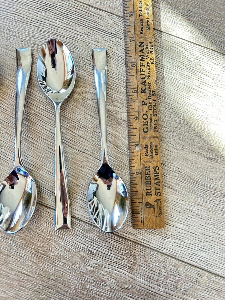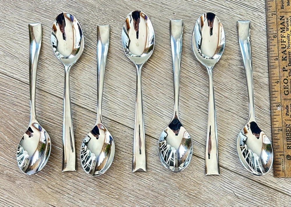 Add a touch of elegance to your tea time with this set of 7 Soprano Teaspoons from Gourmet Settings. Crafted from high-quality 18/10 stainless steel, these spoons are both durable and stylish. The glossy silver finish gives them a sleek and modern look that will complement any table setting.These spoons will be a great addition to your collection. These are an excellent condition. I’m putting others in this pattern on eBay at this time and I’m happy to combine.