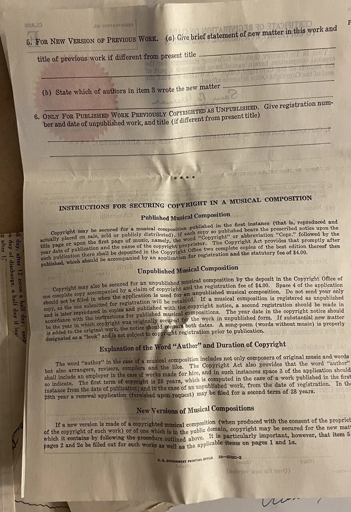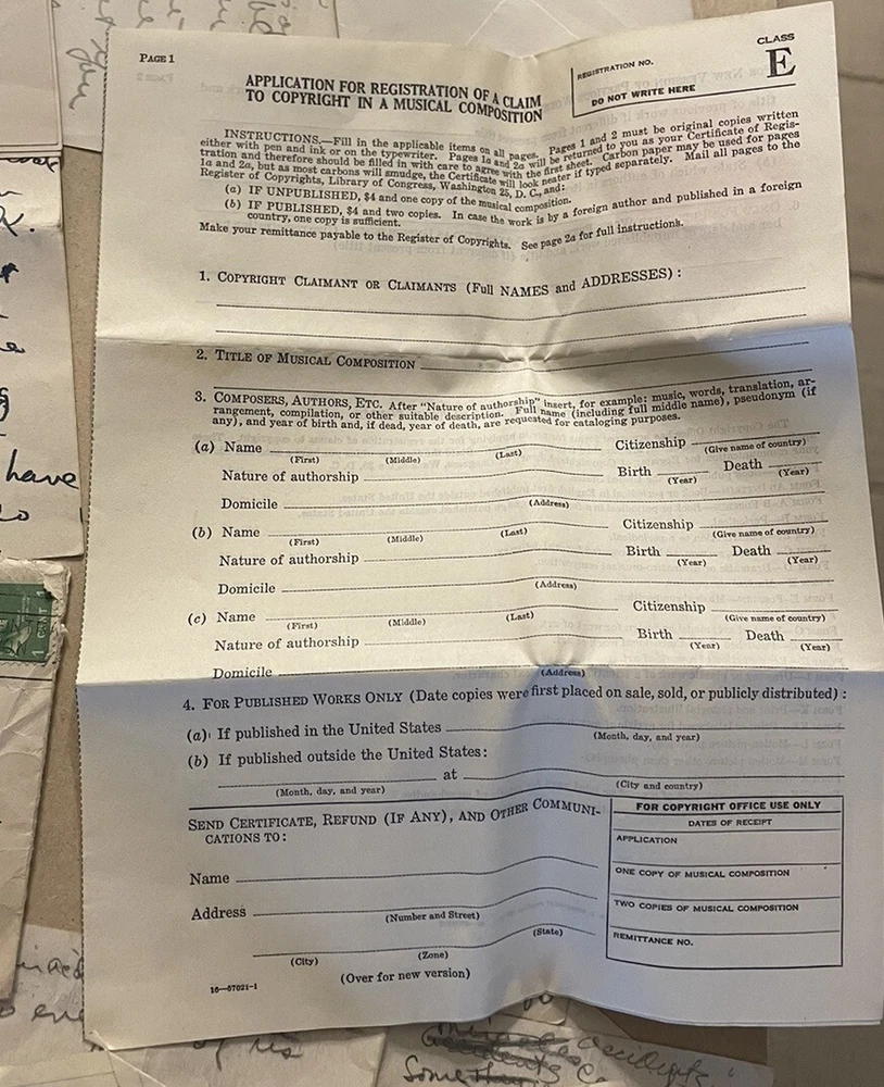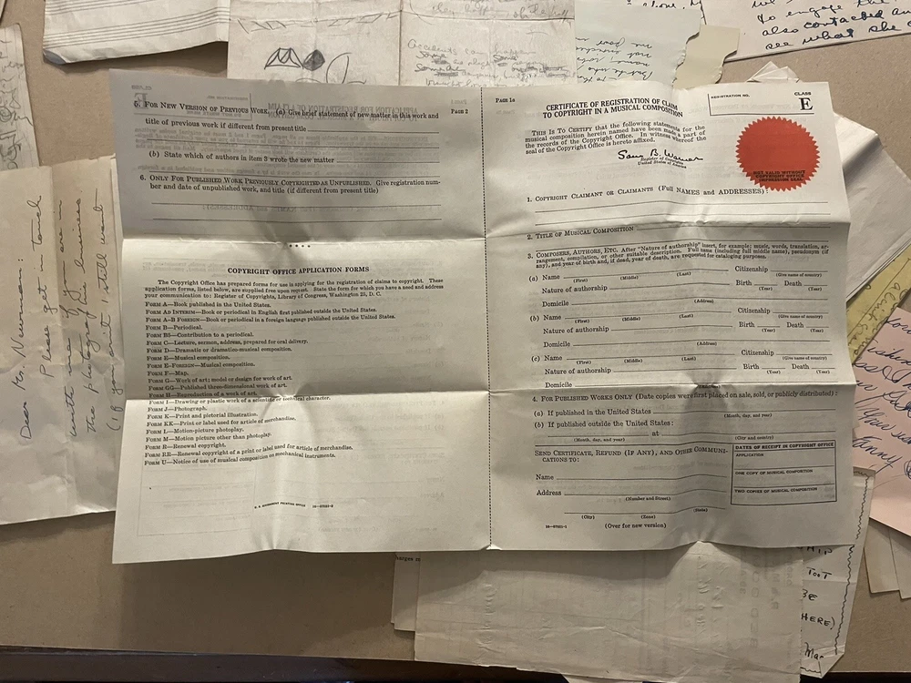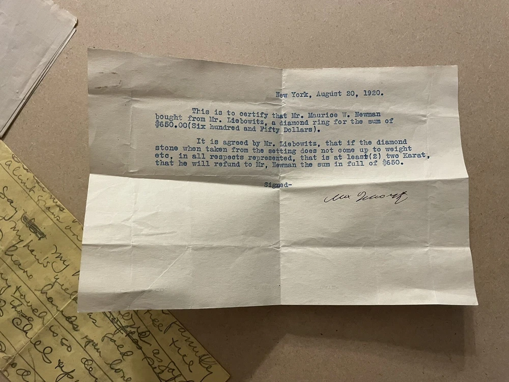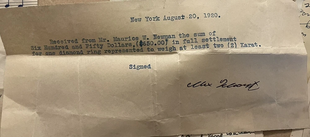 Newman Estate Palm Beach Florida 1920 Lot of ephemera Music copyrights Appraisal of a 2 karat ring Home renovation receipts
