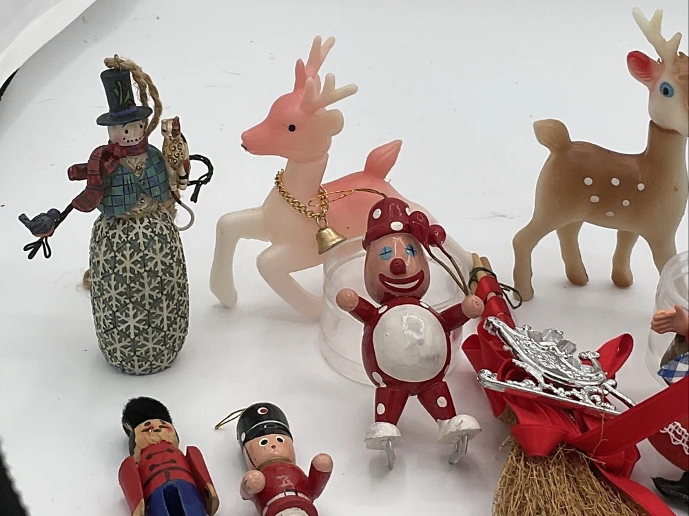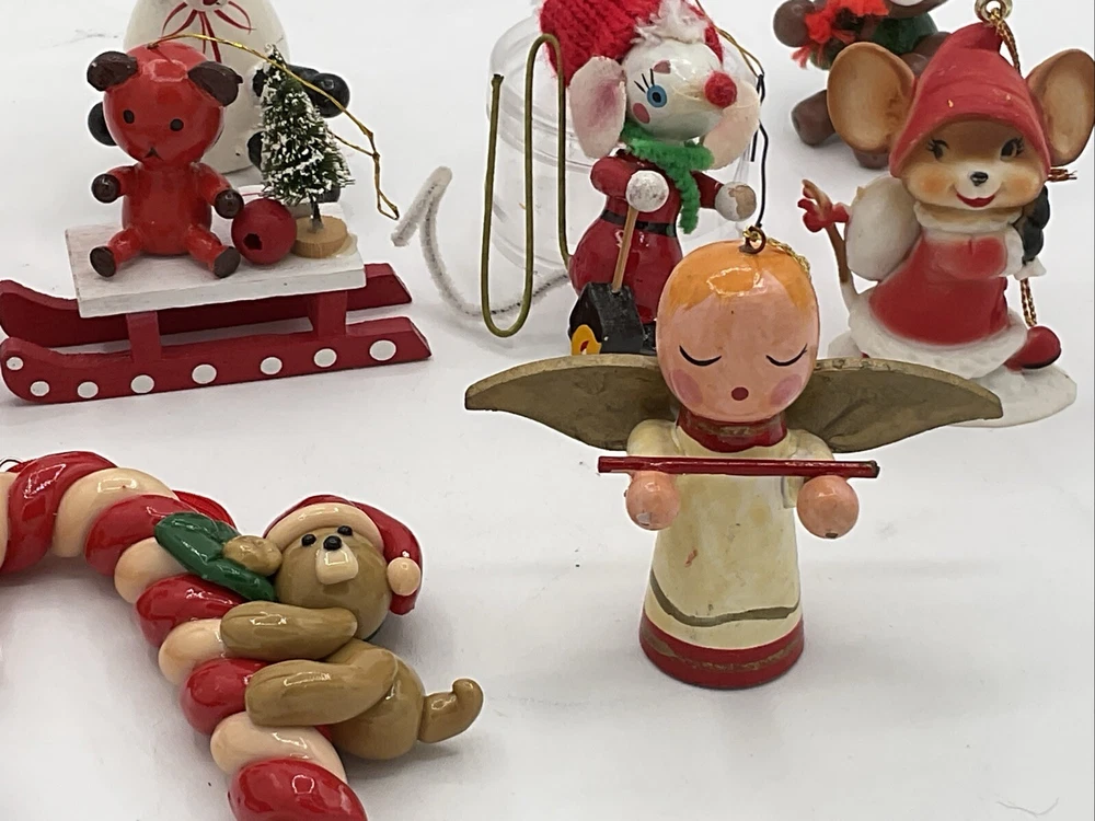 Lot Of 10 Vintage Christmas Ornaments Wood Animals Toy Soldier Deer Dutch Girl