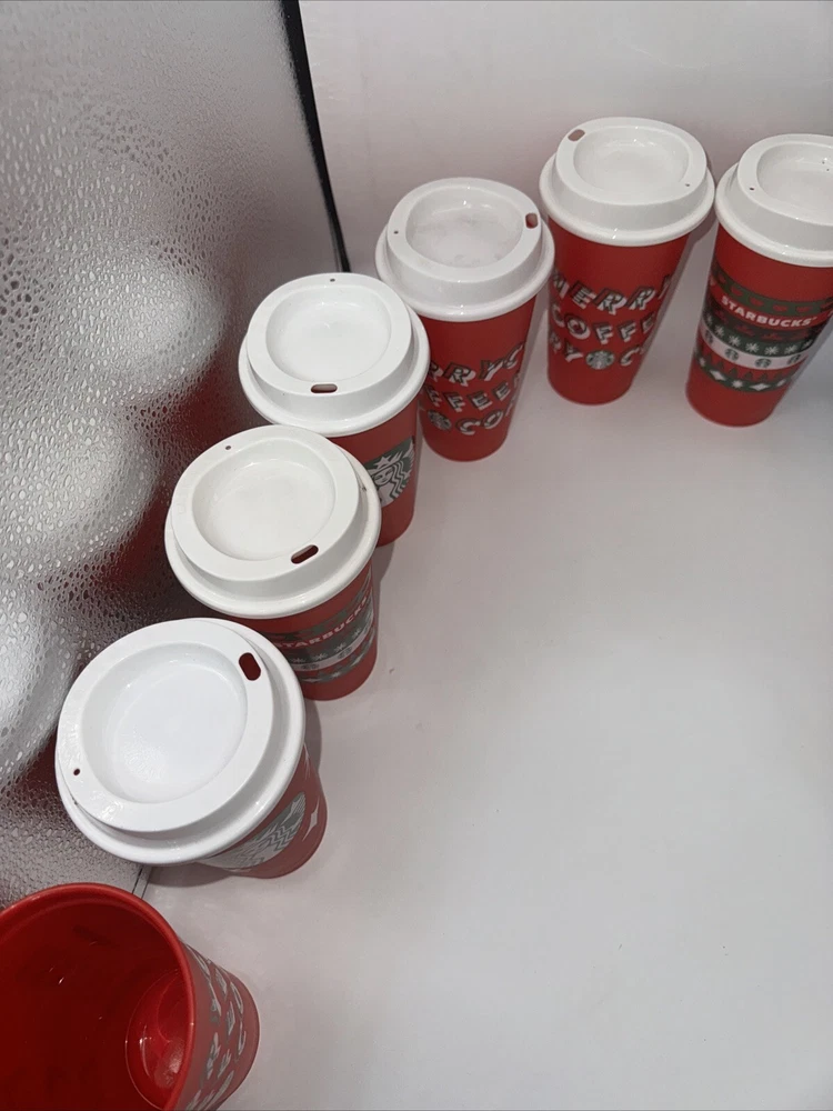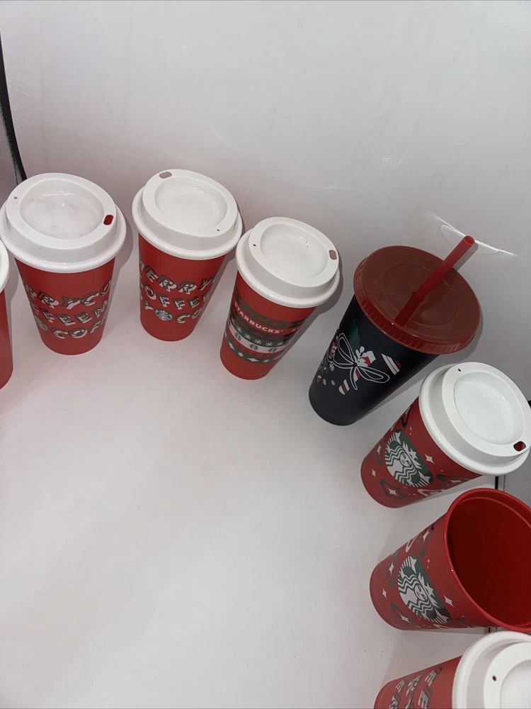 This lot of 12 Starbucks Christmas cups is a must-have for any coffee and tea enthusiast out there! These cups are perfect for enjoying your favorite hot beverage during the holiday season. Each cup is carefully crafted with intricate designs and details that truly capture the spirit of Christmas. Made by the renowned Starbucks brand, these cups are sure to impress collectors and customers alike. Whether you're a Starbucks fan or just looking for a unique addition to your collection, these Christmas cups are a great choice. So why wait? Add them to your cart today and enjoy the convenience of reusable cups.