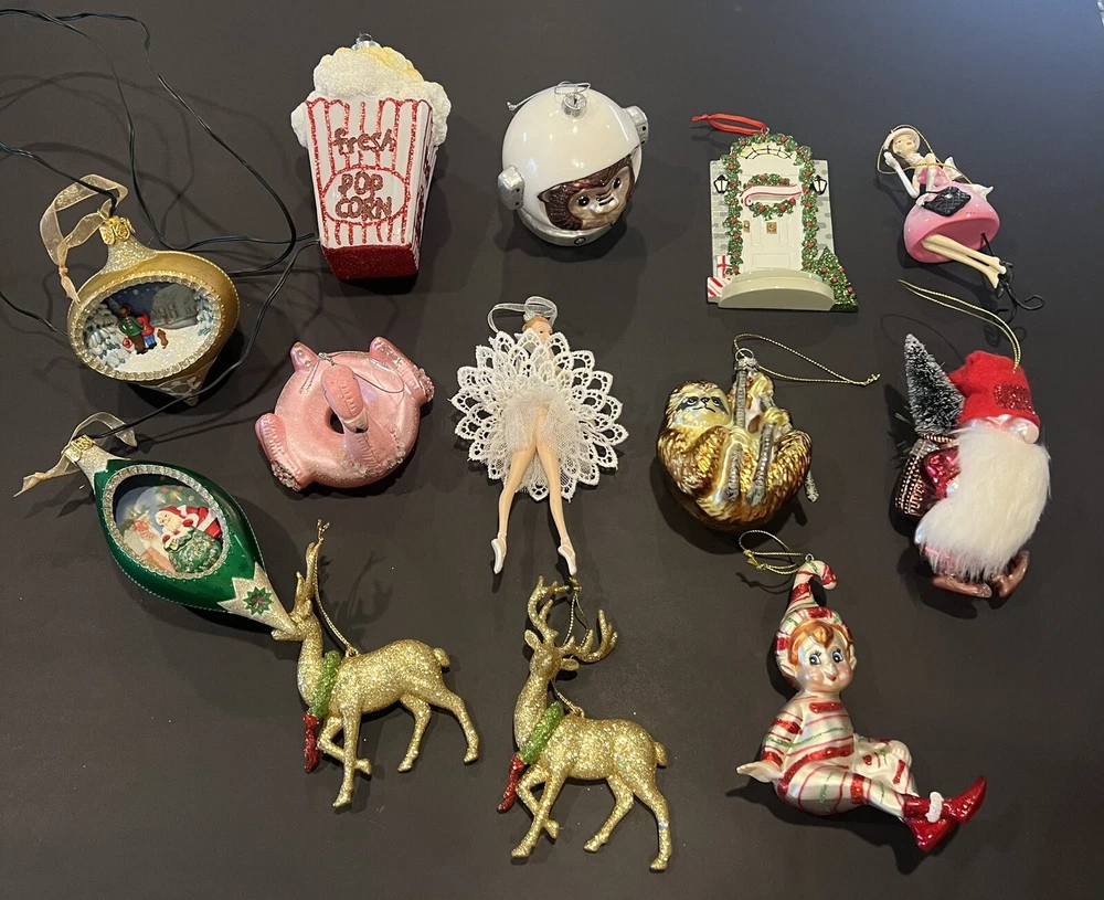 A couple of small areas of wear, otherwise in good shape 2 are hallmark illuminations (missing cord?/untested) Others are unbranded
