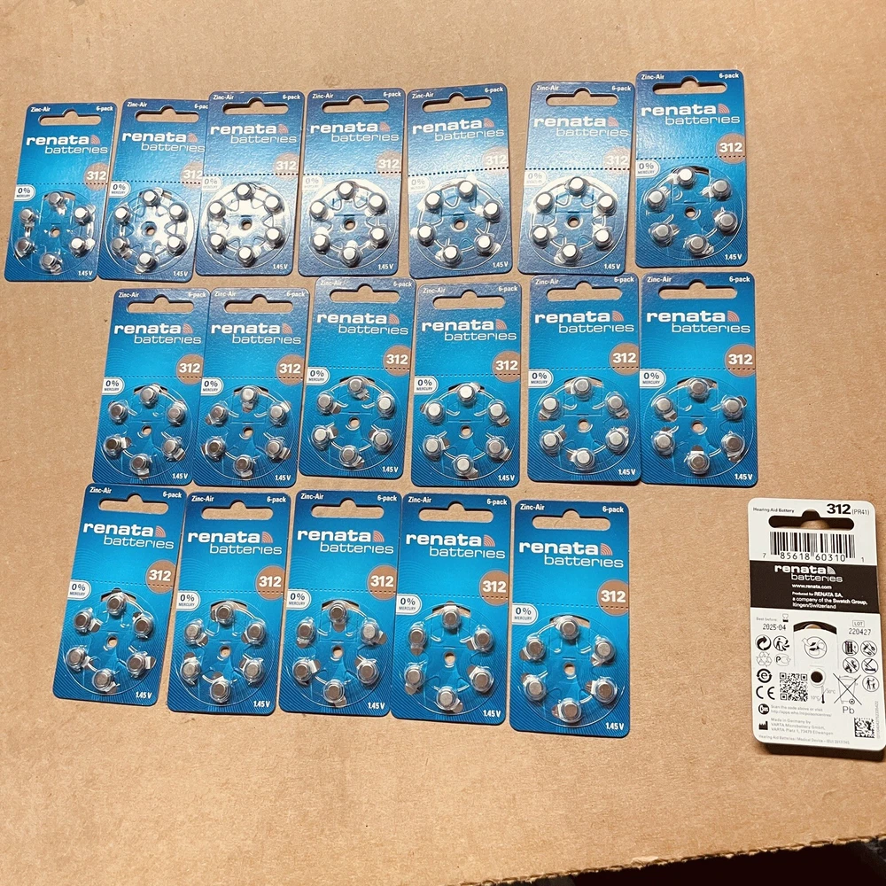 Lot Of 19, Renata Size 312 Hearing Aid Batteries-6 Pack, Exp. 2025