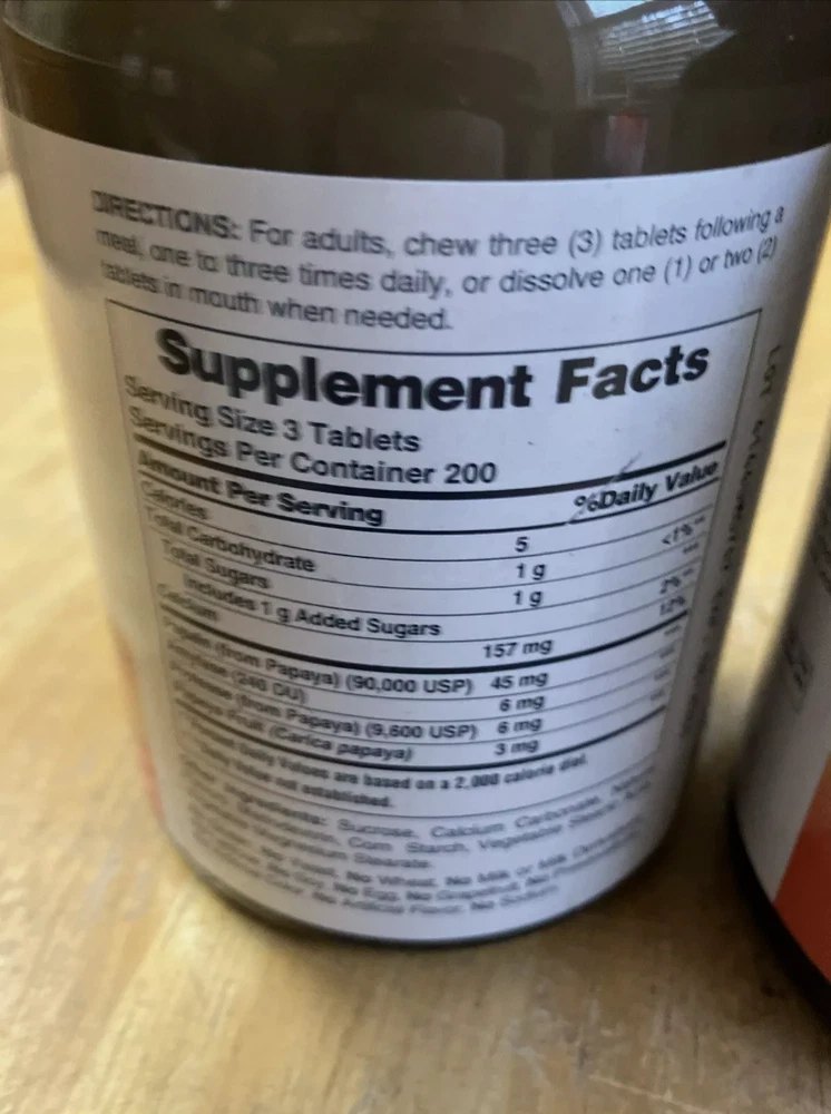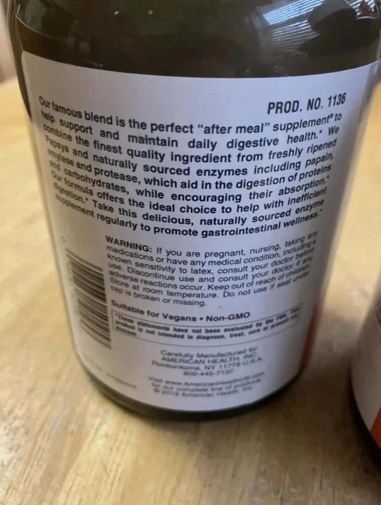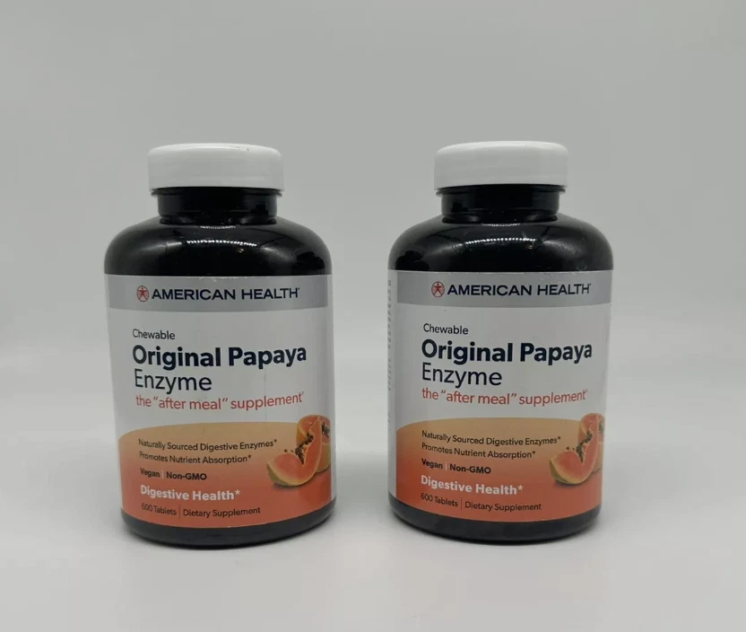 American Health Original Papaya Enzyme 600 Chewable Tablets Free Ship. 2 Pack