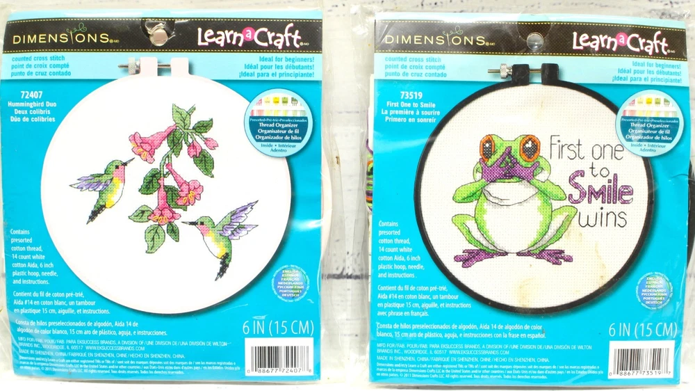 2 Dimensions Learn-a-Craft Counted Cross Stitch Kits 72407 And 73519 New Sealed Both kits are new and sealed Our Fun and Friendly Policies Customer Happiness is Our Priority: We're all about making you smile! If your purchase doesn't put a grin on your face, let us know. Your satisfaction is our mission, and we're here to make it happen. Fast Shipping, Happy Waiting: We're like a lightning bolt in the shipping world! Most orders zoom out within 1-2 business days of payment. Get ready to track your parcel's speedy journey to you. Return Cheers: Need to send something back? No worries! We're here to help with the return magic. Just remember, like a friendly handshake, you're responsible for the return shipping. Spreading Positivity: Your support means the world to us! Join our community of good vibes. Share your thoughts, leave feedback, and be part of our journey to keep the positivity flowing. Talk to Us, We're All Ears: Got questions, ideas, or just want to chat? We're all ears and ready to connect. Reach out through eBay's messaging, and expect a friendly response from our side! Your happiness is our driving force. Thanks for choosing us and letting us be part of your good times!