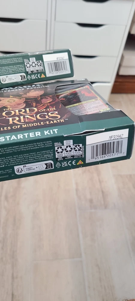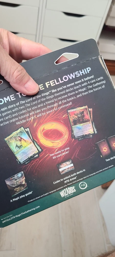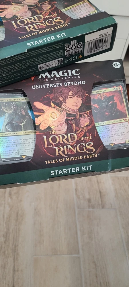 Year Manufactured:2023Card Size:StandardLanguage:EnglishSet:The Lord of the Rings: Tales of Middle EarthCharacter:Frodo BagginsUPC:0195166205717Game:Magic: The GatheringFeatures:Starter DeckConfiguration:BoxManufacturer:Wizards of the CoastAge Level:13+MPN:D15290000gtin13:0195166205717Number of Boxes:2 Starter DecksMaterial:Card Stock