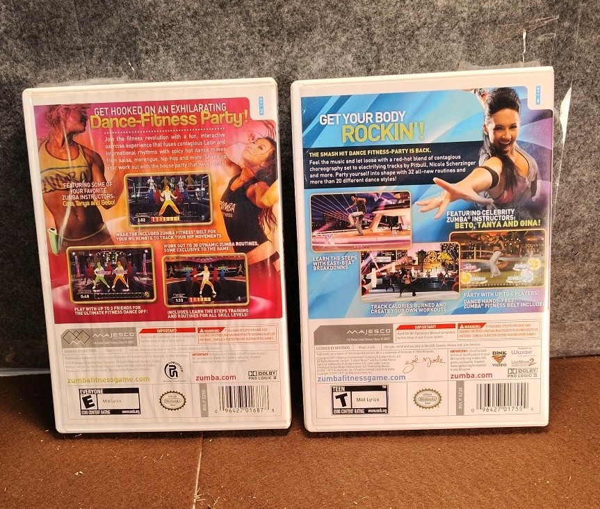 This product is a lot of 2 Nintendo Wii Zumba Fitness games, including Zumba Fitness 2, along with accompanying booklets. The games are part of the Zumba Fitness Series, focusing on dance and incorporating elements of music, fitness, and lifestyle. These games are suitable for all ages with an E rating and are published by Majesco. Perfect for those looking to get fit and have fun while playing games on their Wii console.