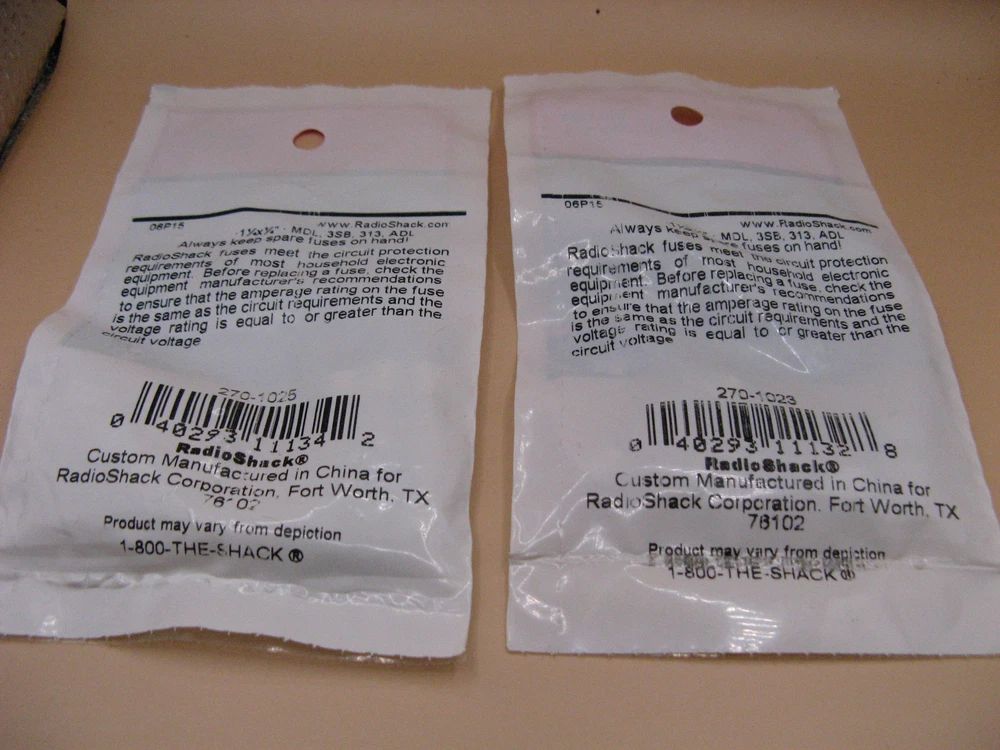 What you are bidding on is a tough to find lot of Radio Shack fuses. You get the following items. One package of 3-Amp 250 Volt Fuses - Three fuses in the package One package of 2-Amp 250 Volt Fuses - Three fuses in the package. Both packages are in new unopened condition. Winning bidder please include $4.22 for S&H I will gladly combine shipping for winners of multiple items Listing and template services provided by inkFrog