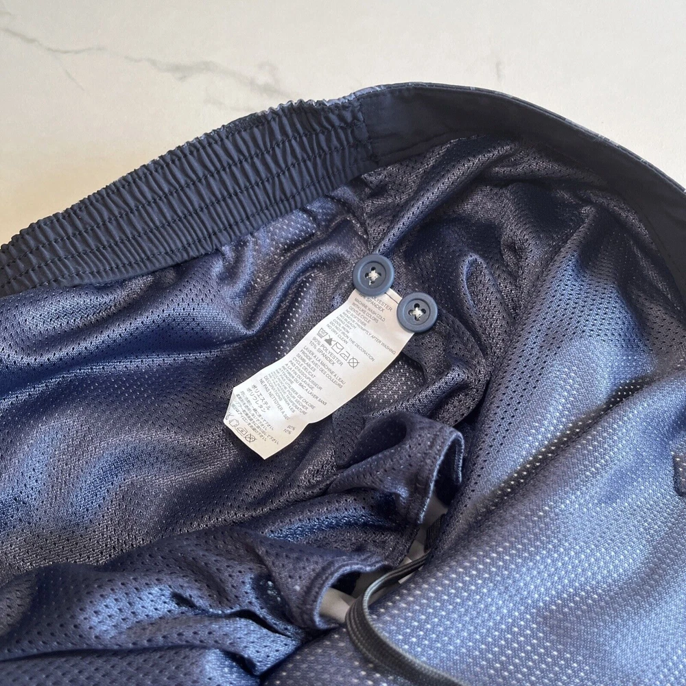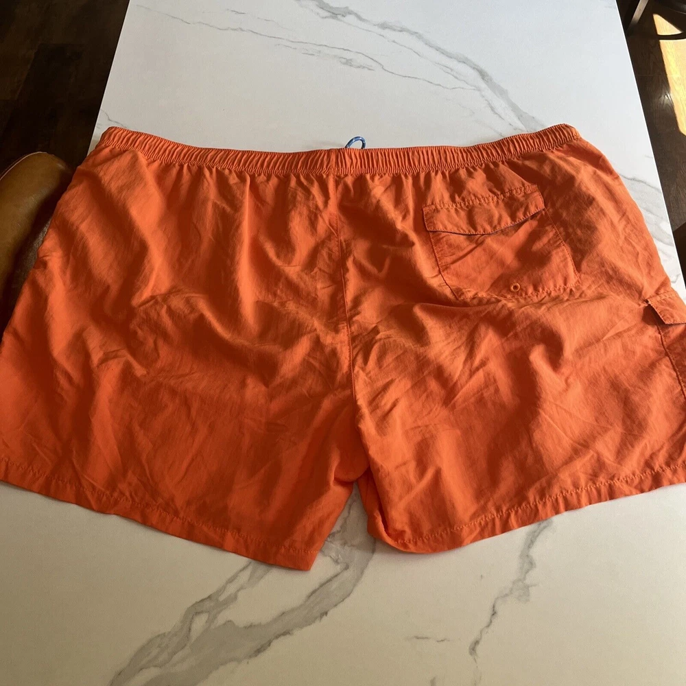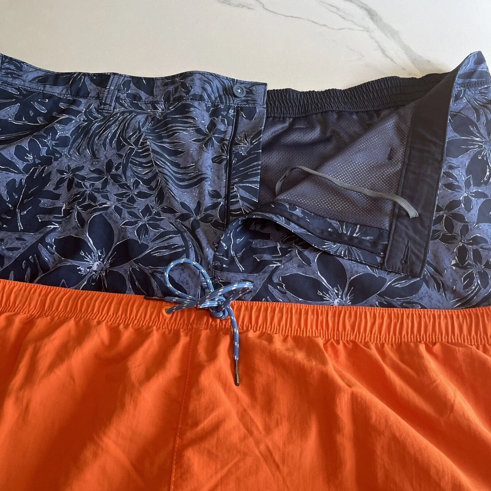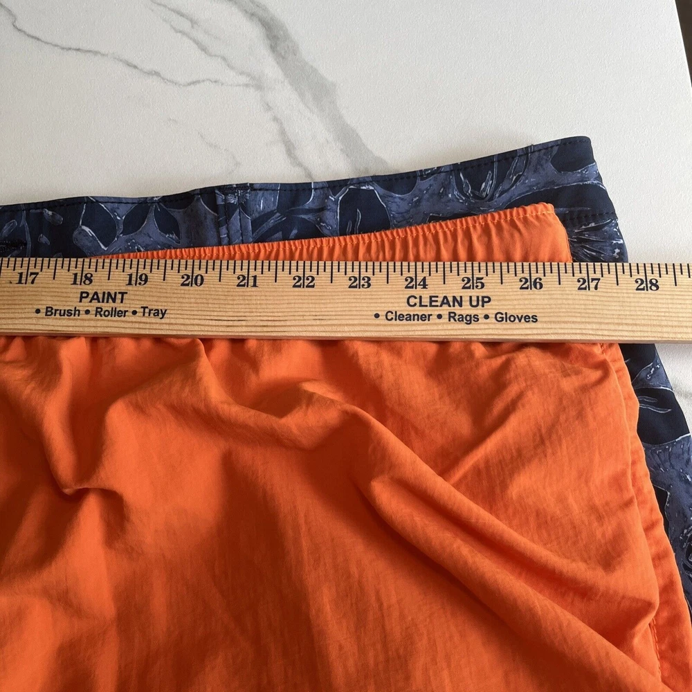Elevate your beach look with these stylish Tommy Bahama Relax Swim Trunks. These shorts come in a solid blue color with a tropical floral pattern and are made of a blended fabric of polyester and spandex. The mesh lining provides a breathable and comfortable fit, while the elastic waist and drawstring ensure a perfect fit for any activity, whether it be surfing or just lounging by the pool. These trunks also feature a built-in brief, back pocket, and additional pockets to keep all your essentials safe. Perfect for a beach or pool day, these Tommy Bahama shorts will make you feel stylish and comfortable all day long. Excellent, preowned condition. See photos for measurements.
