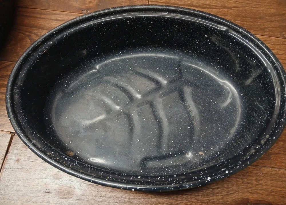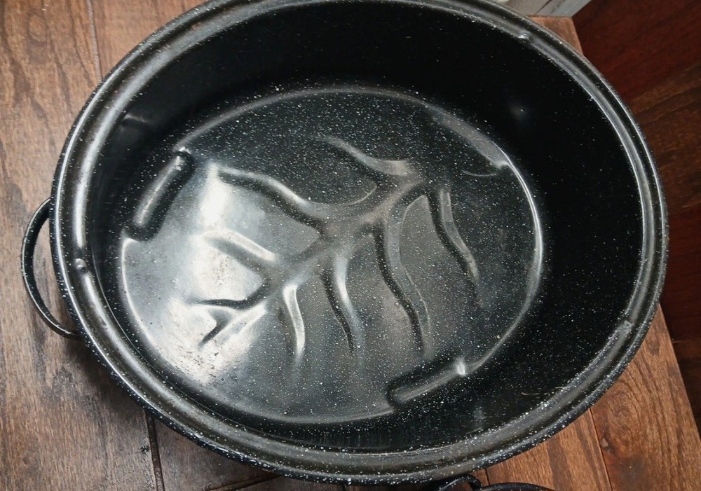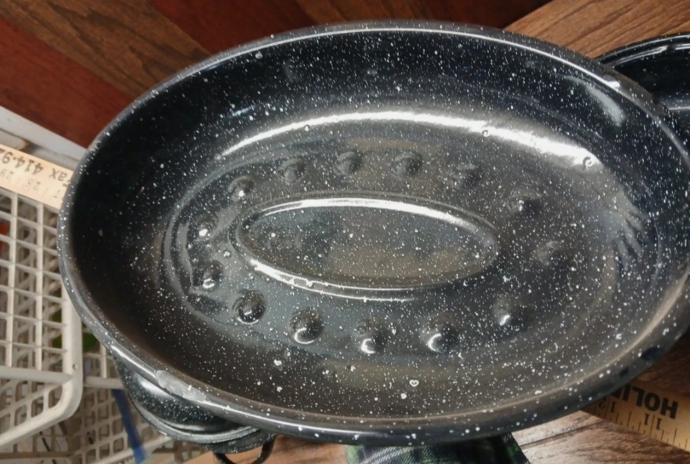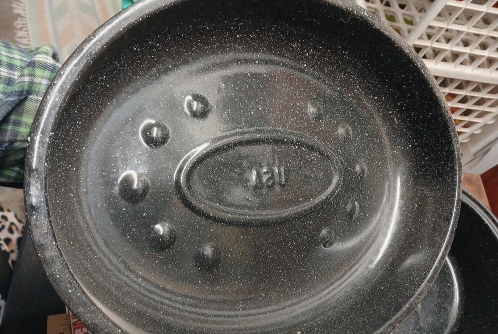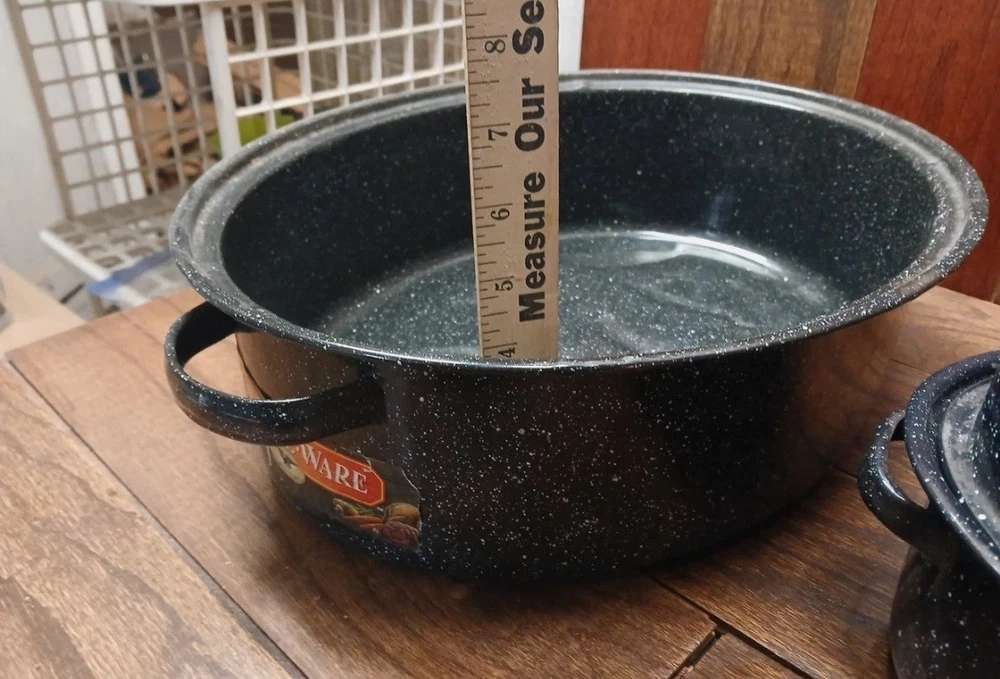 HomeLot Of 2 VNTG Black Enamel Granite Round And Oval Roasting Pan with lid 14" 18"