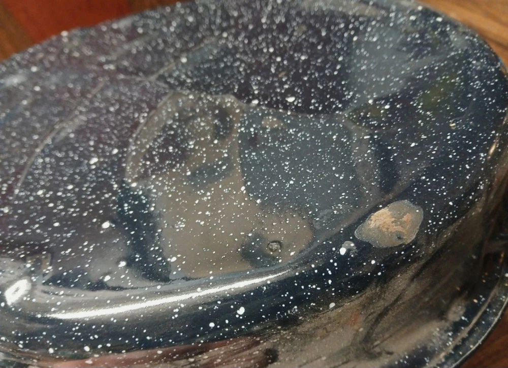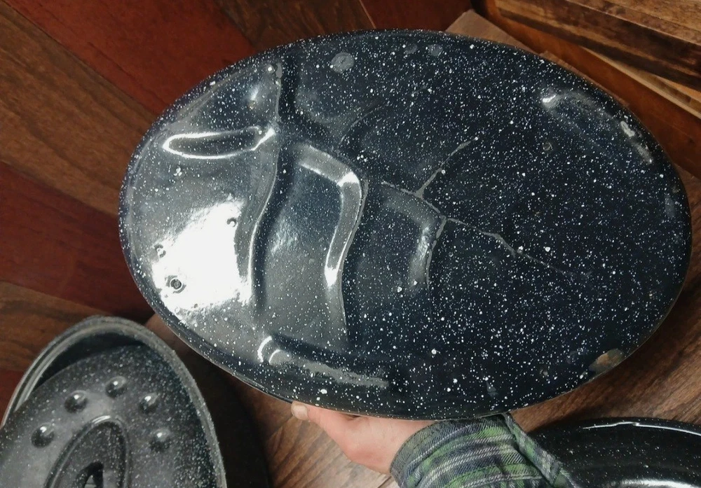 Lot Of 2 VNTG Black Enamel Granite Round And Oval Roasting Pan with lid 14" 18"