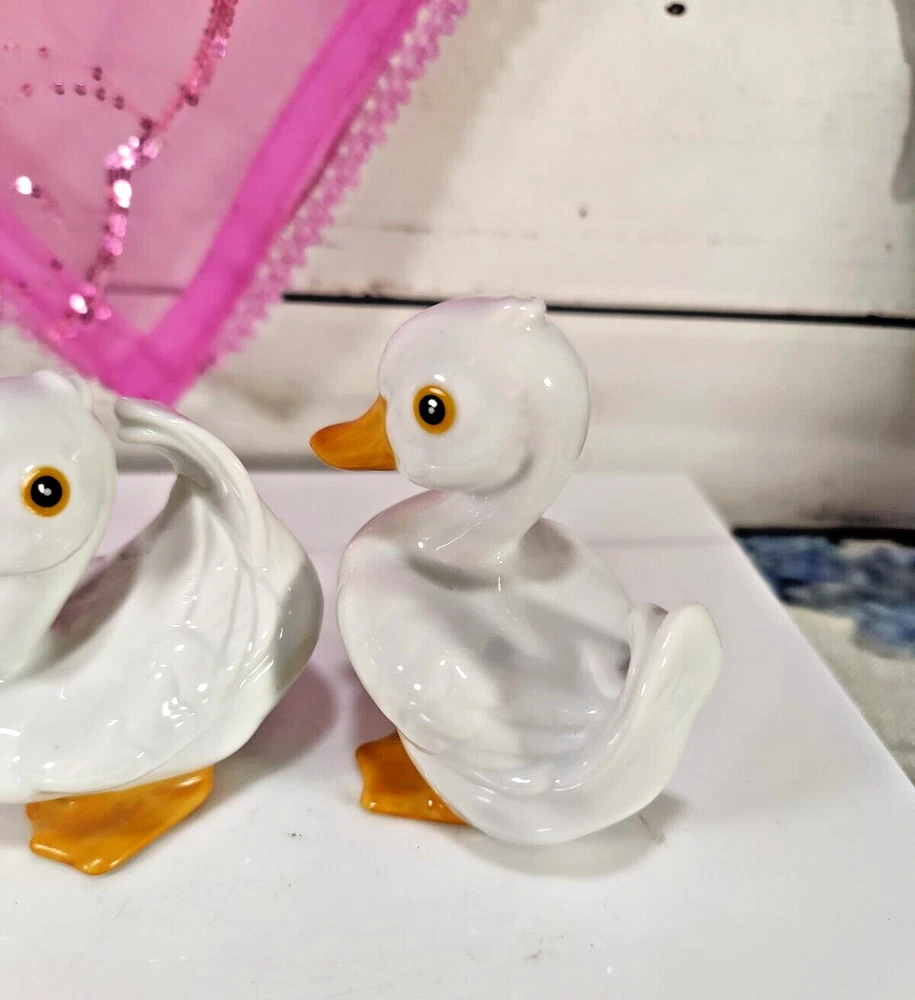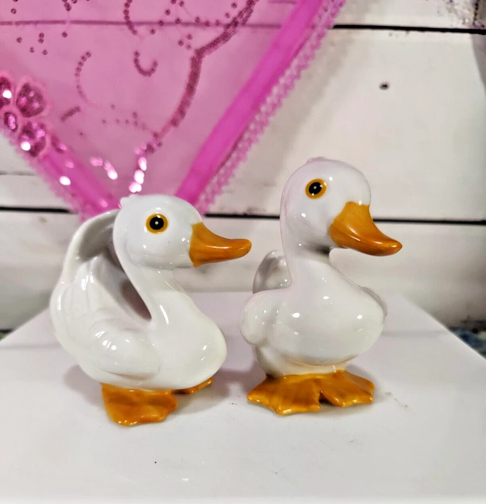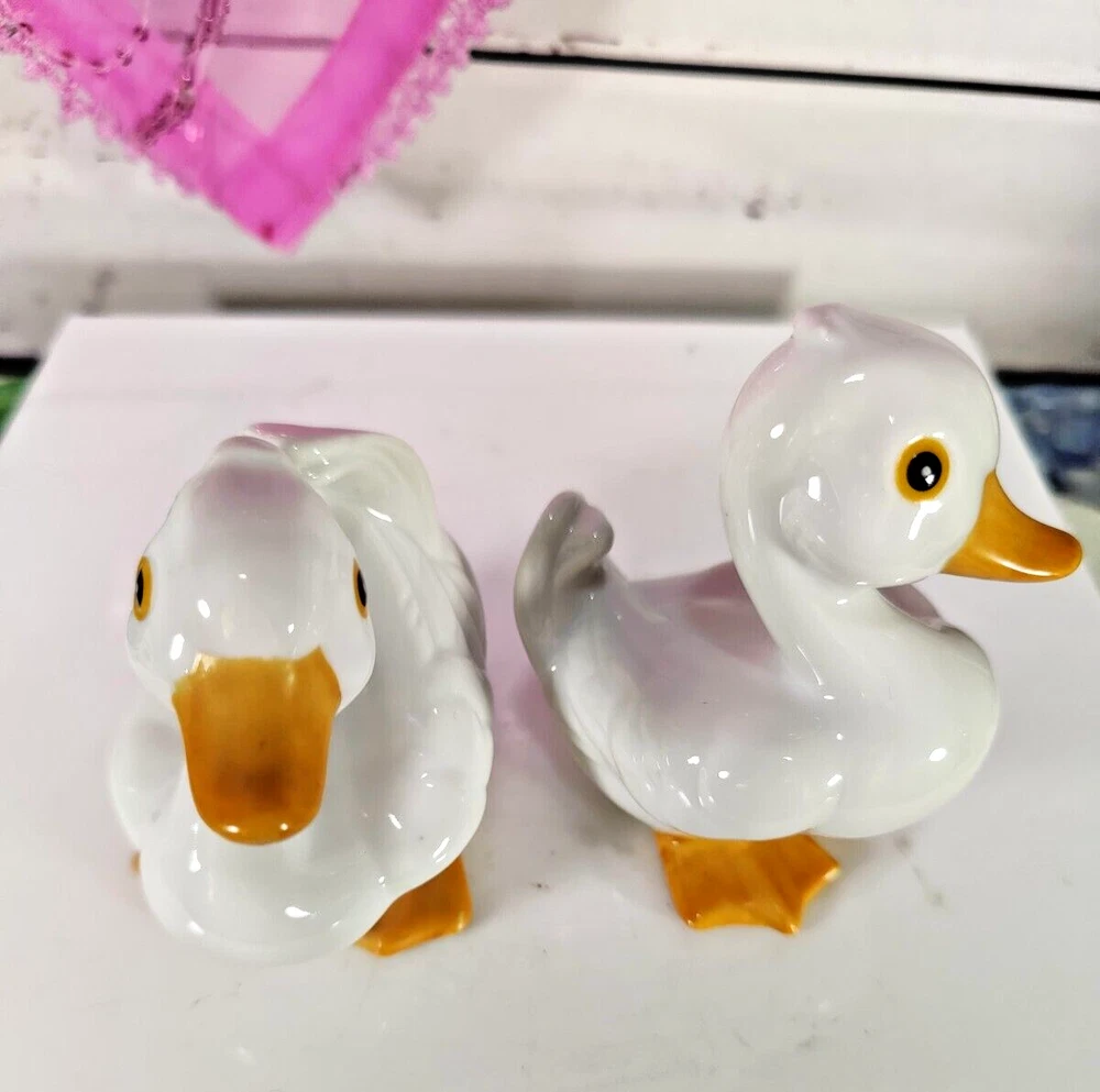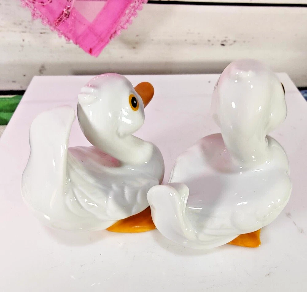 Add a touch of vintage charm to your decor with this lot of two Homco white ceramic duck figurines. These small figurines are perfect for any room and occasion, whether you're looking to decorate your living room or add to your collection of animal-themed collectibles. The glossy finish and all-over pattern make these ducks a unique addition to your decor. Measuring at 3 inches in length, these original figurines from the 1970s are not signed and come in a set of two. The brand, Homco, is known for its quality ceramic products and these duck figurines are no exception. Add a touch of whimsy and charm to your home with these adorable ducks. Please be sure to carefully examine all photos. Feel free to ask questions and to submit offers. As always, Gertie and I thank you for your business. Be sure to follow us on eBay for upcoming promotions!