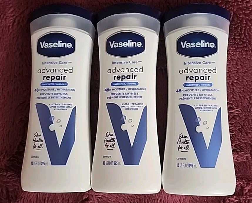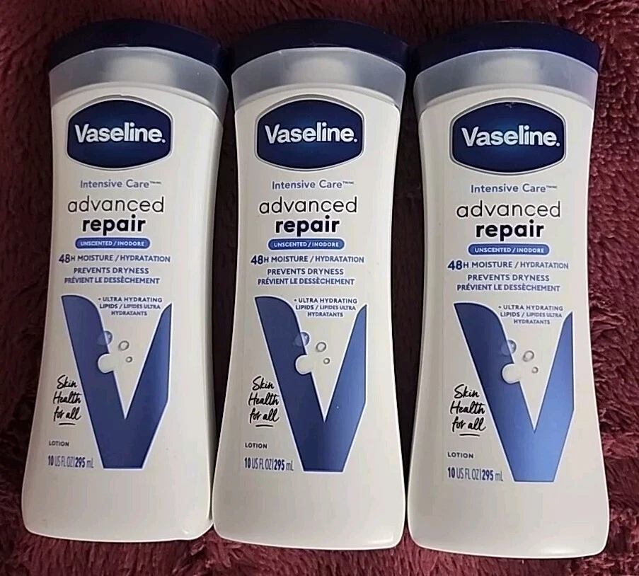 Lot Of 3 Vaseline Intensive Care Advanced Repair Lotion Unscented 10 fl oz (B126.