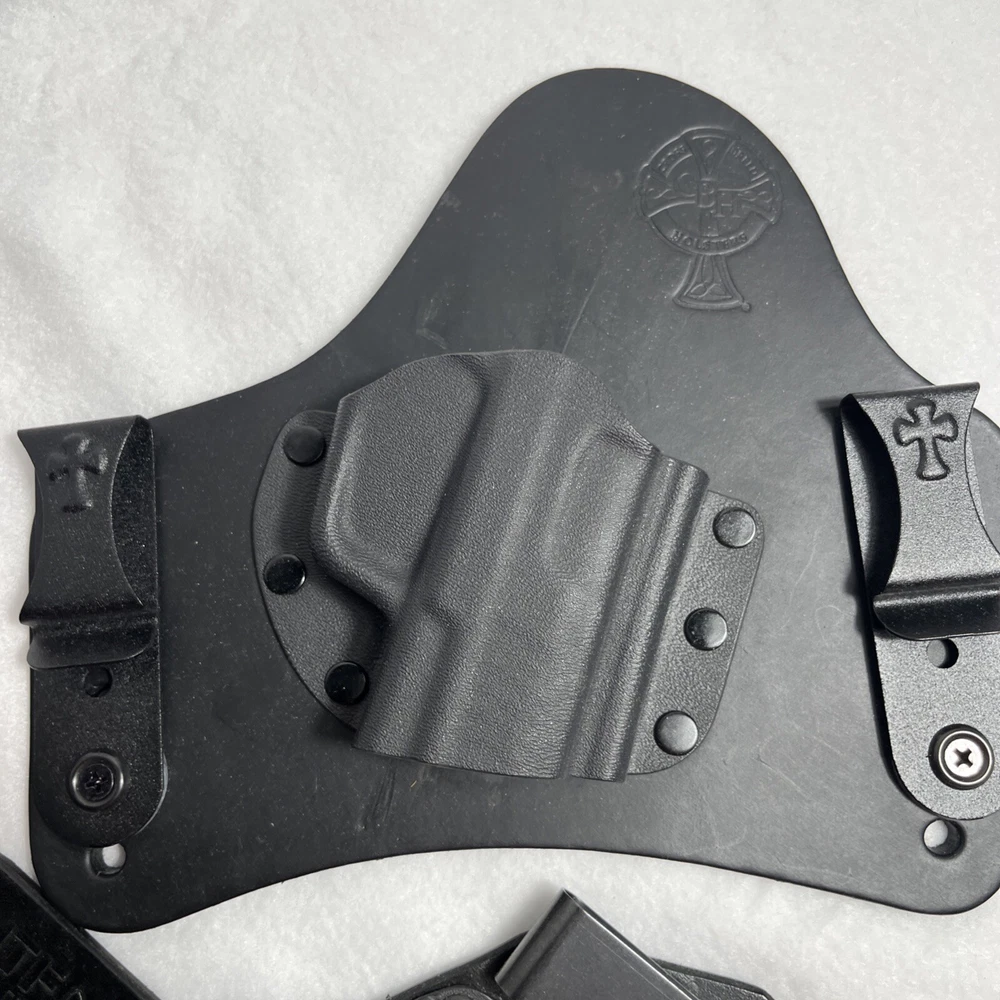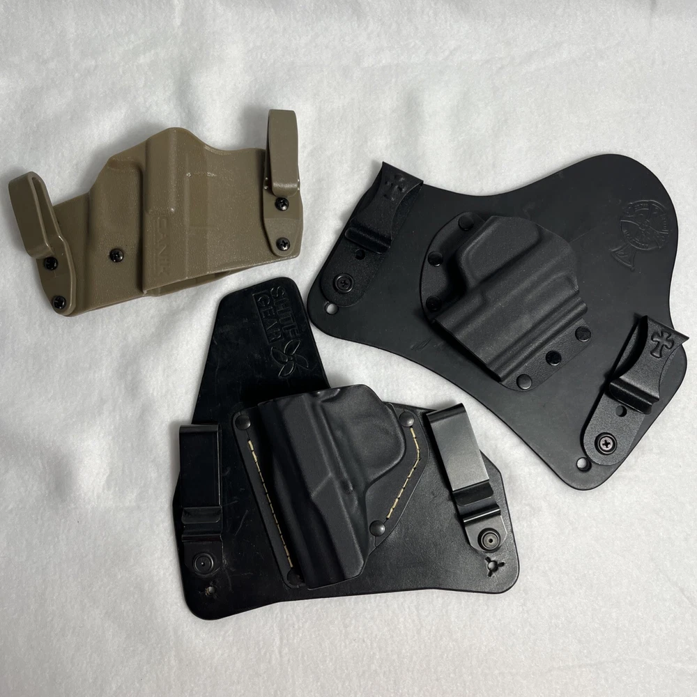 This lot includes three concealed carry gun holsters from Cross Breed, SHTF Gear, Canik, perfect for those who want to carry their firearm discreetly. The black color adds a sleek touch to the design, while the sturdy construction ensures the safety and durability of your firearm. These holsters are designed for a variety of firearms and are ideal for hunting or everyday use. The brand name Cross Breed is known for its quality and these holsters are no exception. Whether you're a concealment enthusiast or just looking for a reliable holster, this lot is a great choice.