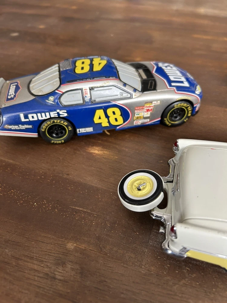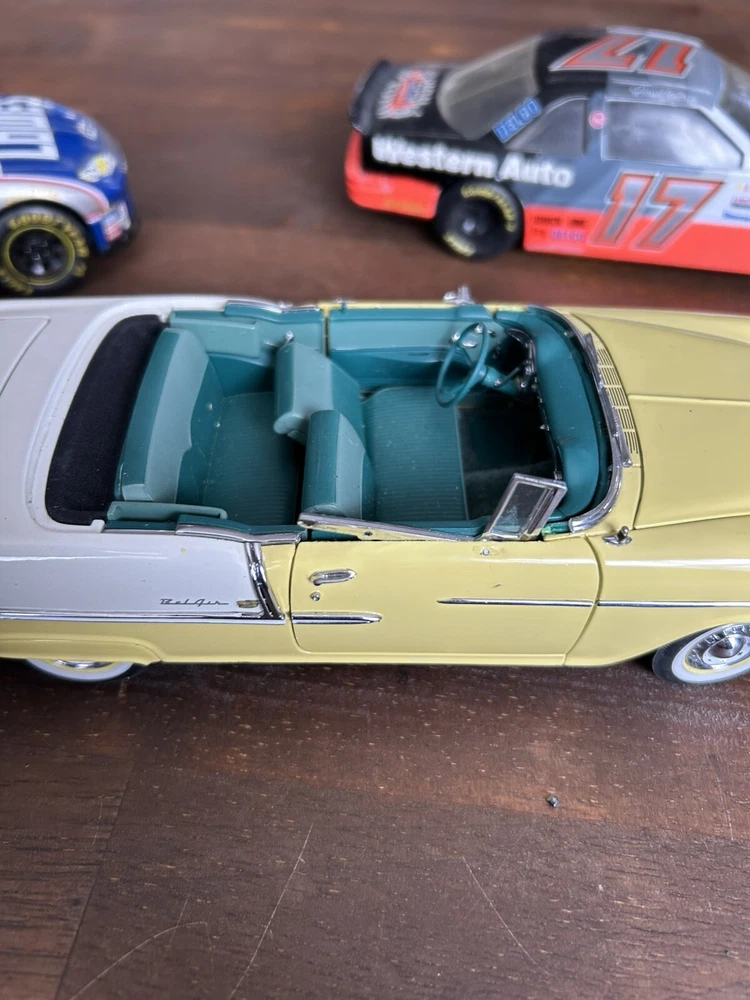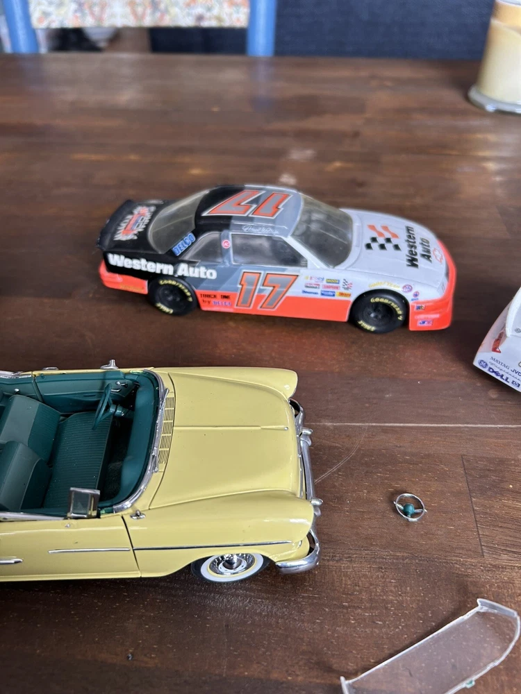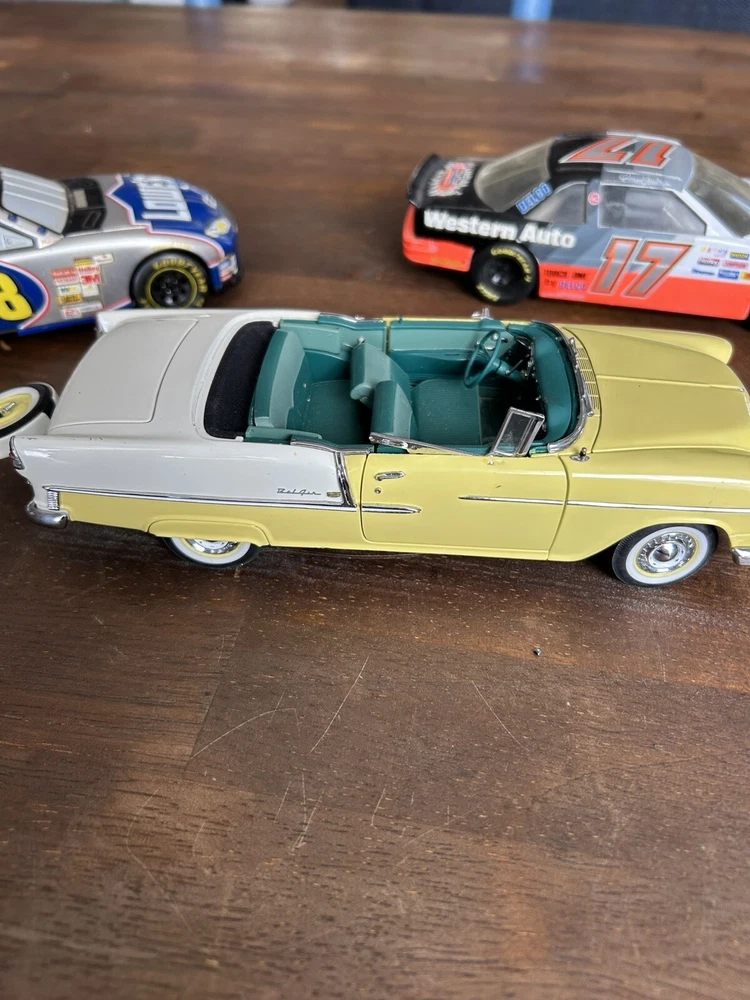 There are exactly 4 total vehicles included in this lot. As you can see the errands 99 vehicle does have a wheel off, but the wheel is included and just needs a bit of repair work to get it back on. There is also a 1955 Bel Air that also needs some more work as well, but the other two vehicles are still in great shape. Also shown normal kind of consistent with age, and are all being sold together, as is and will not be separate payment is your final purchase, and all items are sold as. No return accepted and all items are being sold together