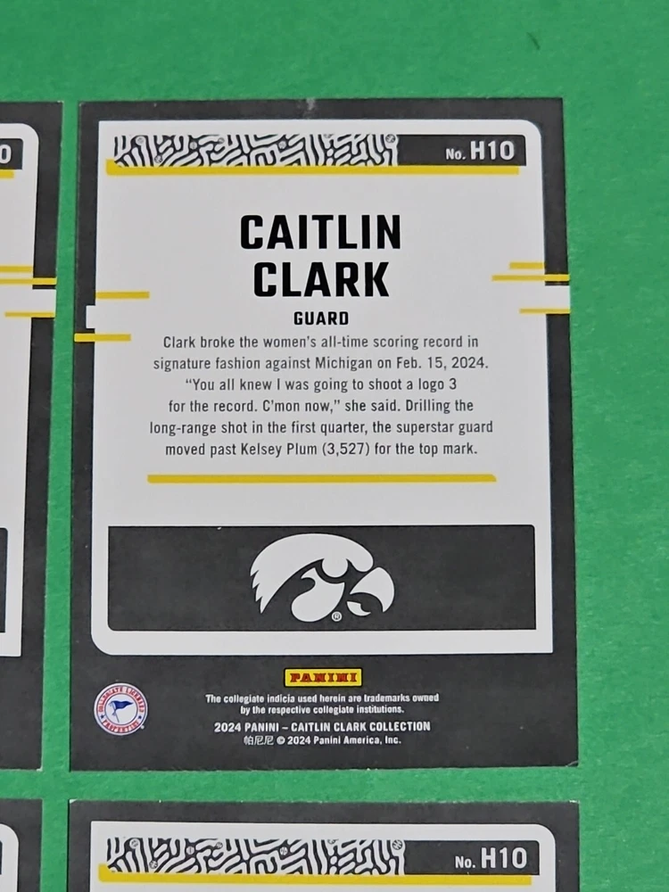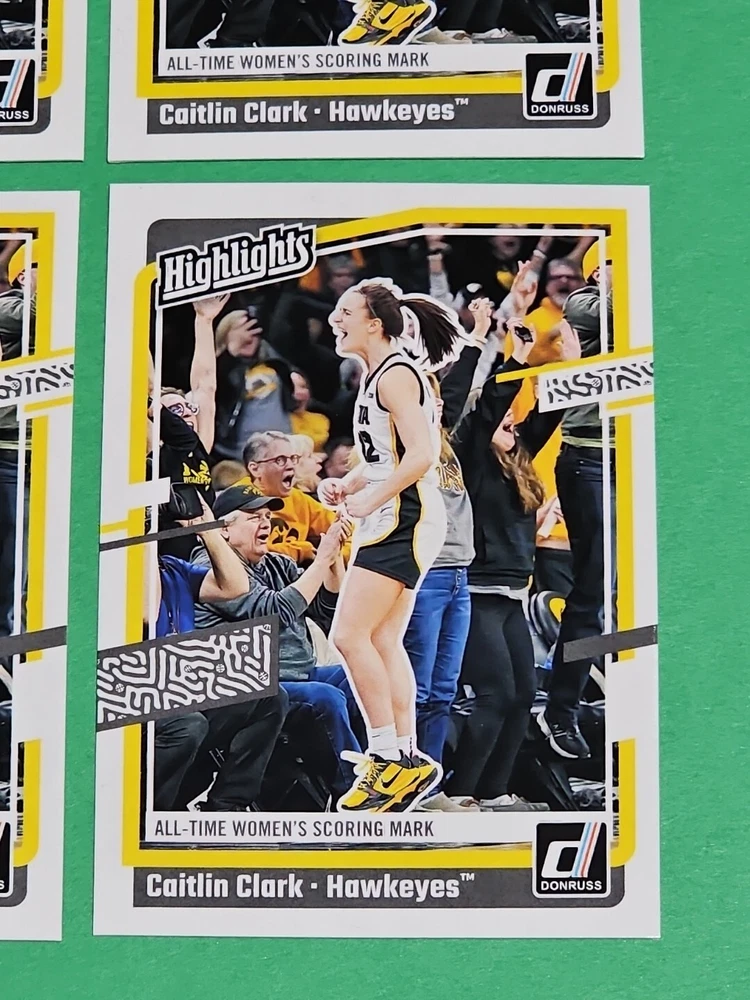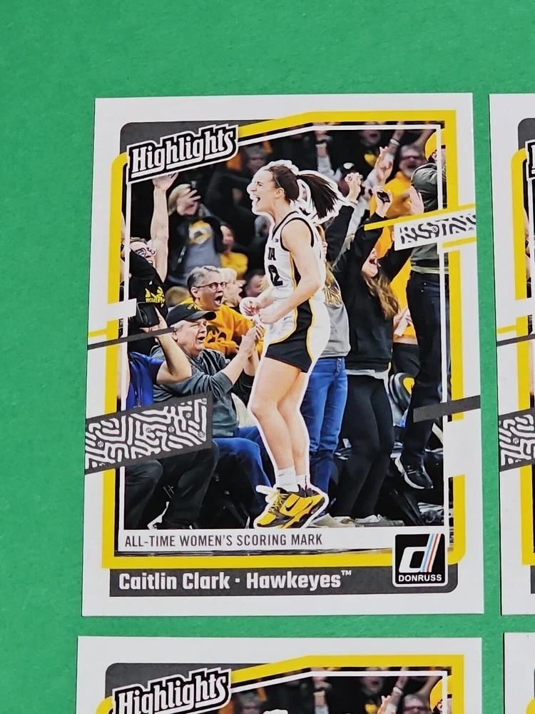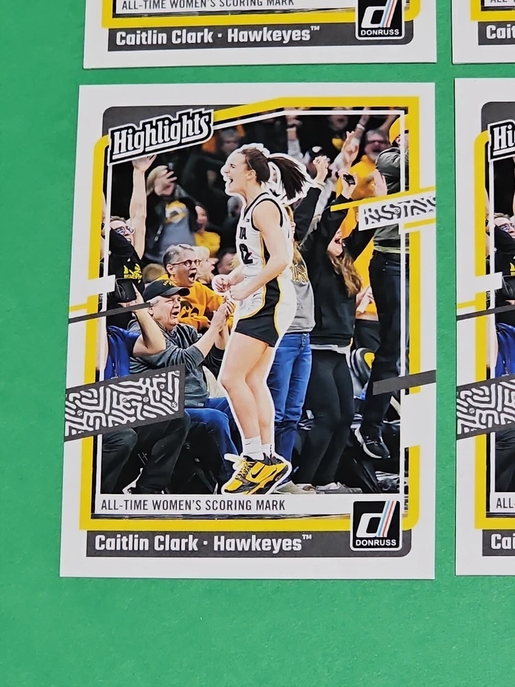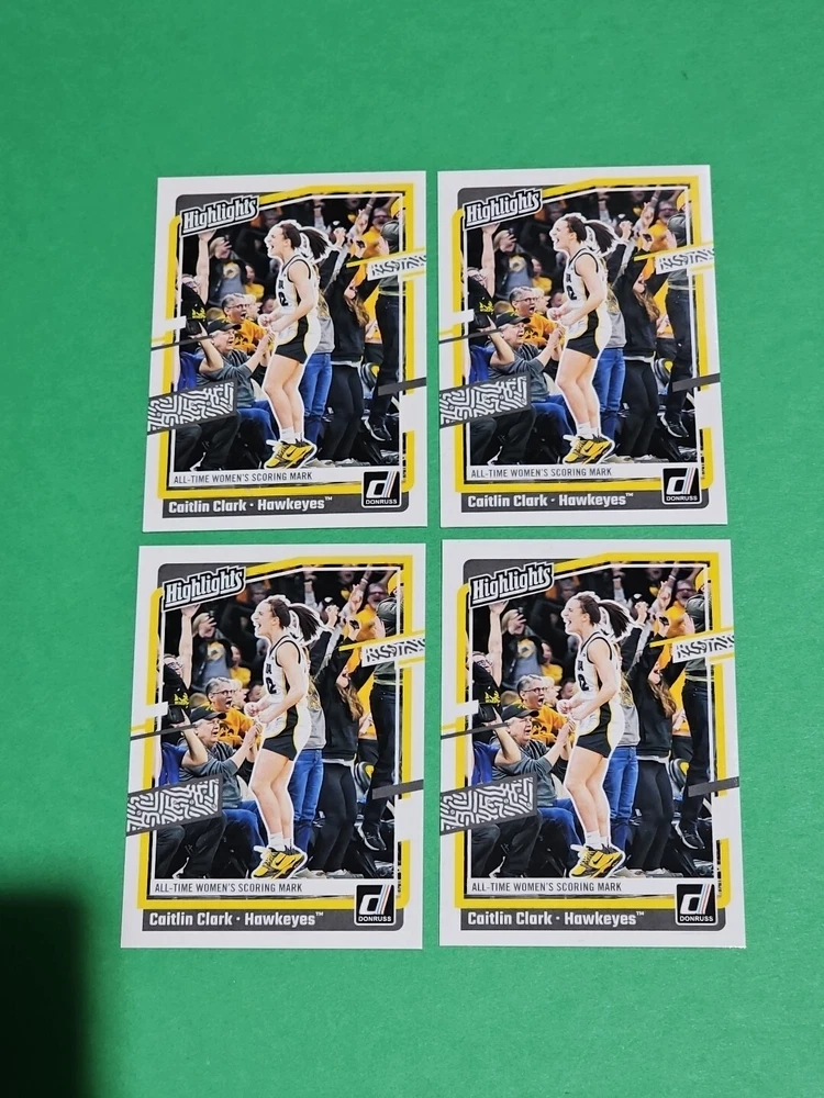 You will receive the exact cards pictured. This Lot of 4 Caitlin Clark Rookie 2024 Panini Donruss Highlights Iowa Hawkeyes Cards No. H10. Pay only $1.50 for shipping on your first cards won & 50 cents per lot of cards won in auctions up to $5.00. $5.00 is the maximum shipping you will pay, no matter how many cards you win! Please wait until you are done with all your purchases and I will send a combined shipping invoice within 24 hours. Please check out all of my other great auctions going on now! I have several Caitlin Clark Auctions going on now! Thanks for looking & good luck!!