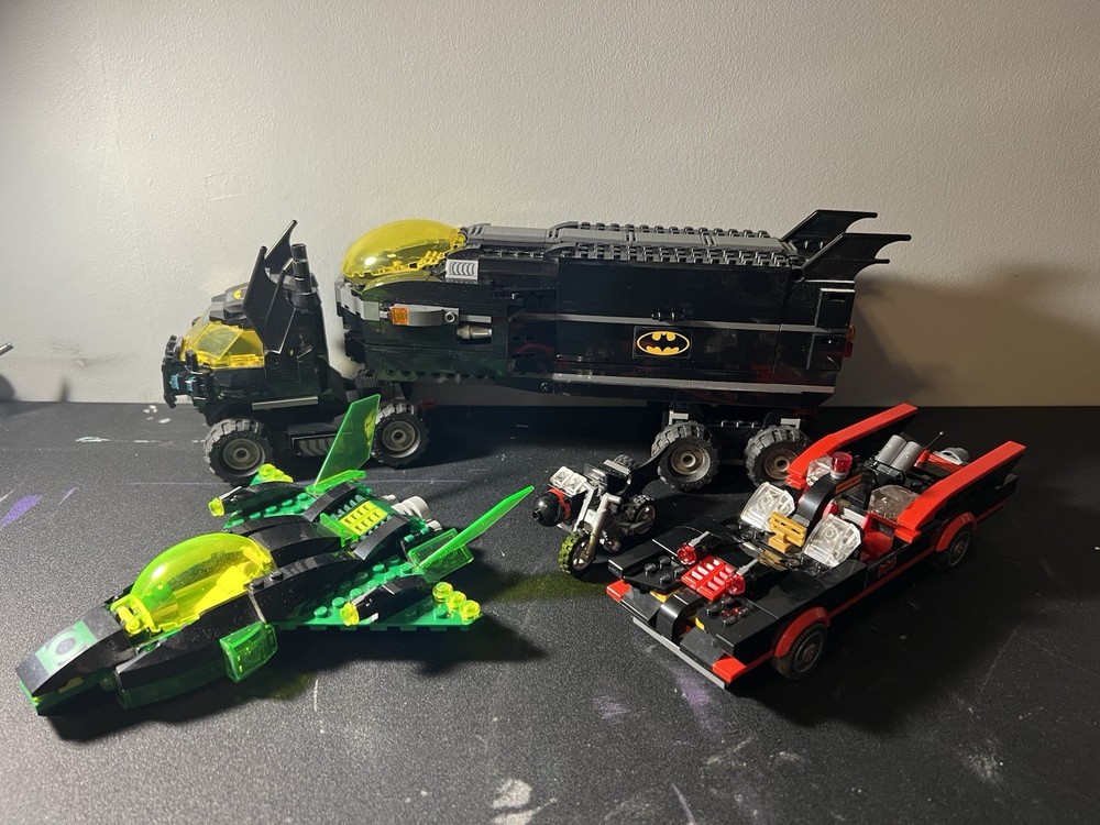 This lot is composed of 4 different vehicles from Lego DC sets. They are all complete but have NO mini-figures included. I also have the instruction booklet for the bat truck set. I will ship all the sets assembled unless told not to. Message me if you have any questions, thanks.