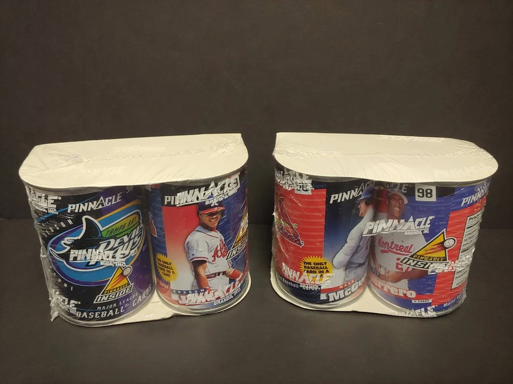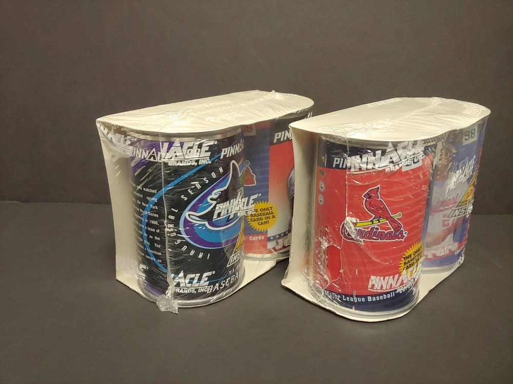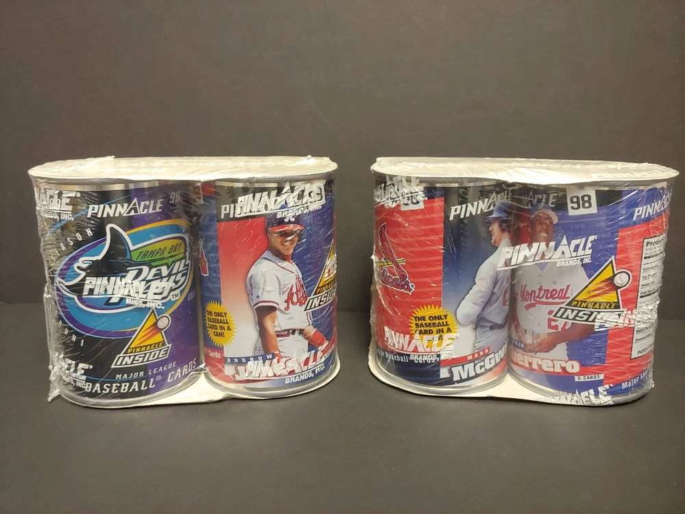 Description: Lot Of 4 (2 Sets) Pinnacle Baseball "Cards In A Can" Various Players/Teams - 1998 Unopened - MLB. These Would Be AWESOME Addition's To Any Sports Related/MLB Type Collection - Really Cool And Unique Items! Condition: New Old Stock - Still Sealed In Original Packaging. The Packaging Does Show a Fairly Minor Amount Of "Wear" From Being Handled Over The Years. PLEASE REFER TO PHOTOS to get a better idea. *I try to describe items to the best of my ability. Also, I try to take as many photos as possible to ensure that you are getting exactly what I have described. I am NO expert when it comes to certain items - I do my best. If you have ANY questions or concerns, please feel free to send me a message. Thank You for looking!!