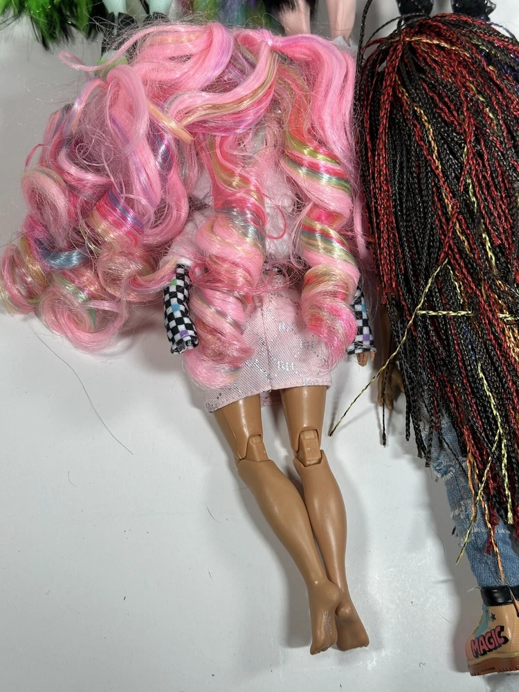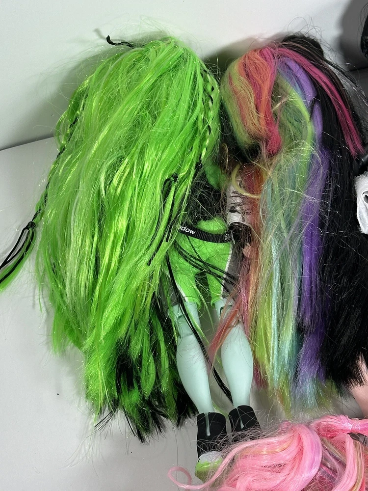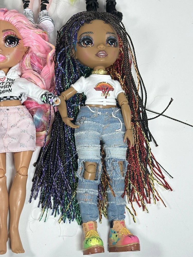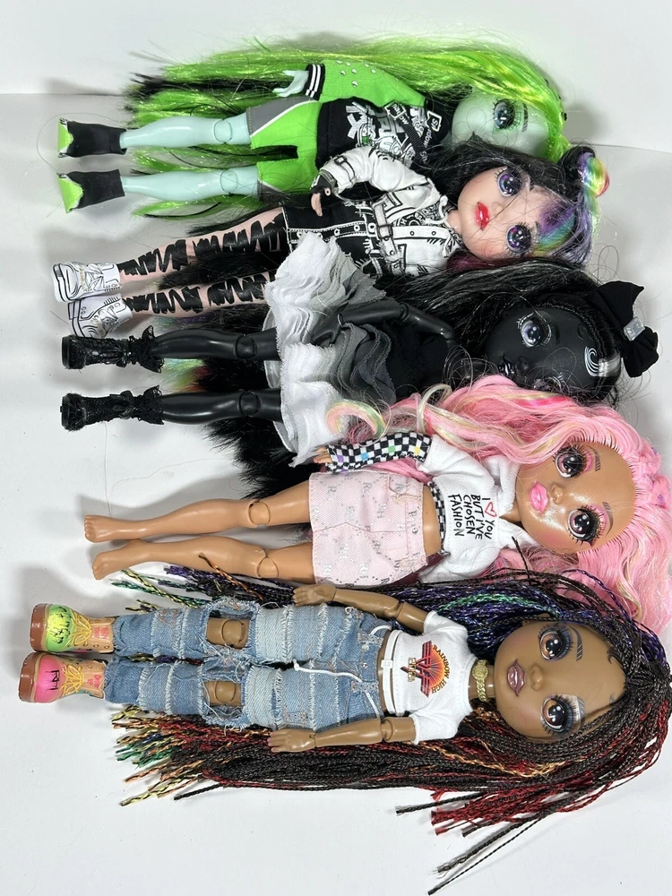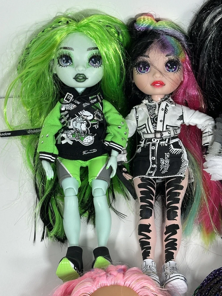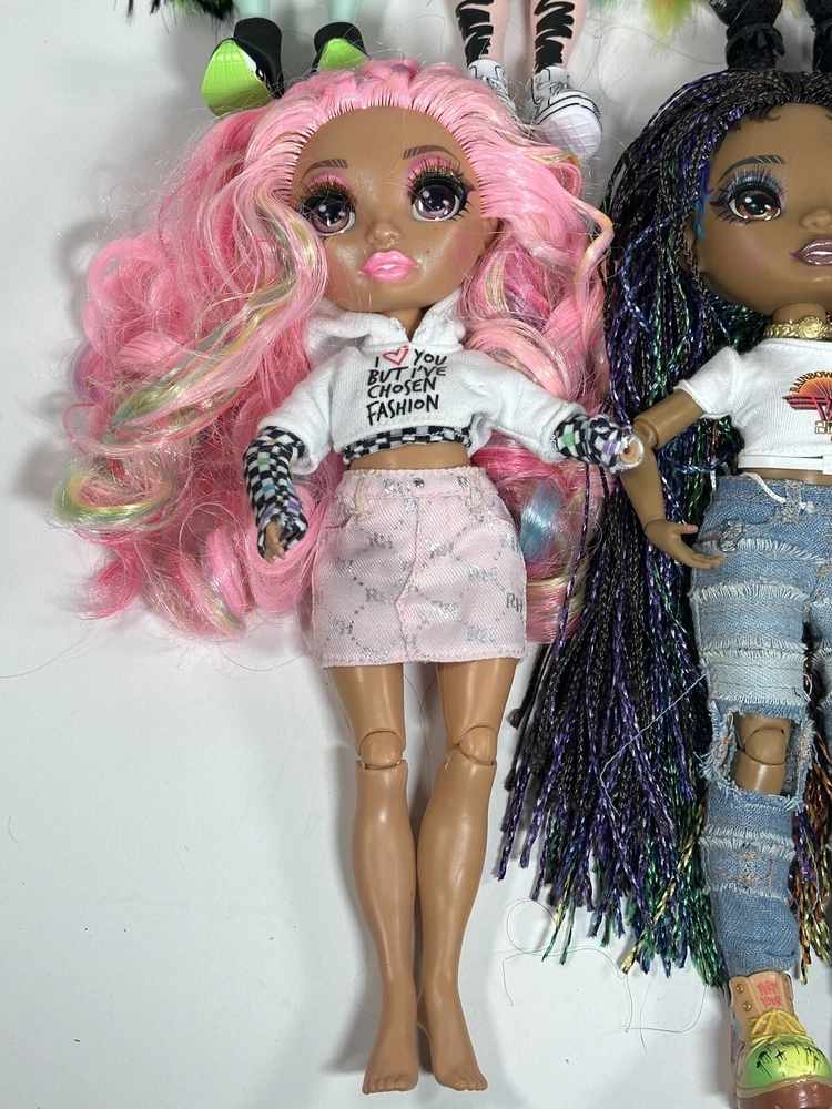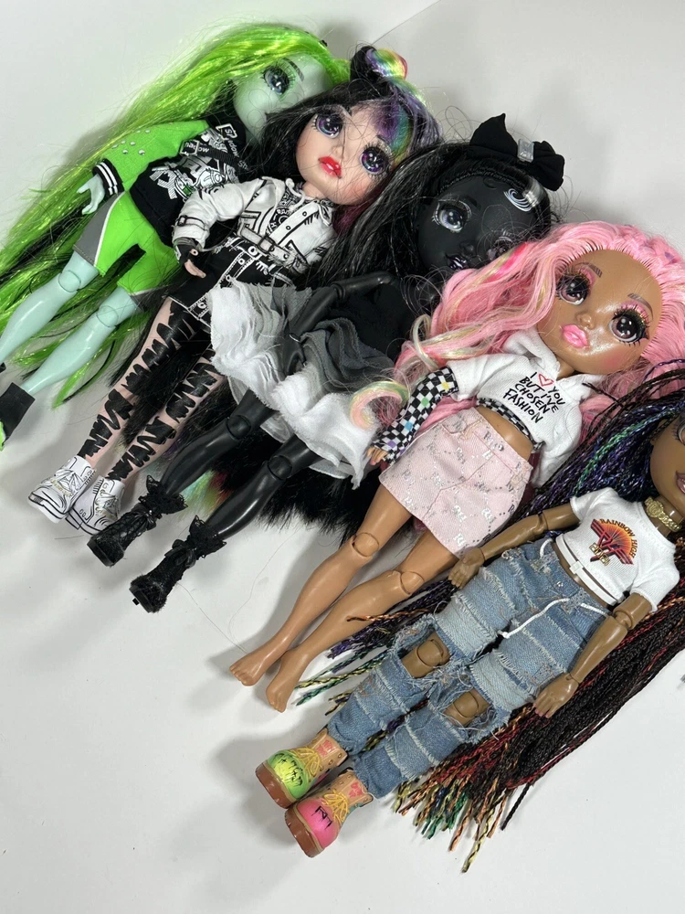 Lot Of 5 Rainbow High/Shadow High Dolls Accessories Clothes Fashion READ Lot of 5 dolls - some rainbow high - some shadow high - one of the dolls is missing a hand (bottom left doll in pictures) most of the dolls hair are very messy/sloppy - some dolls missing shoes/ or accessories - etc - see ALL photos very closely for condition of the dolls Will ship with care