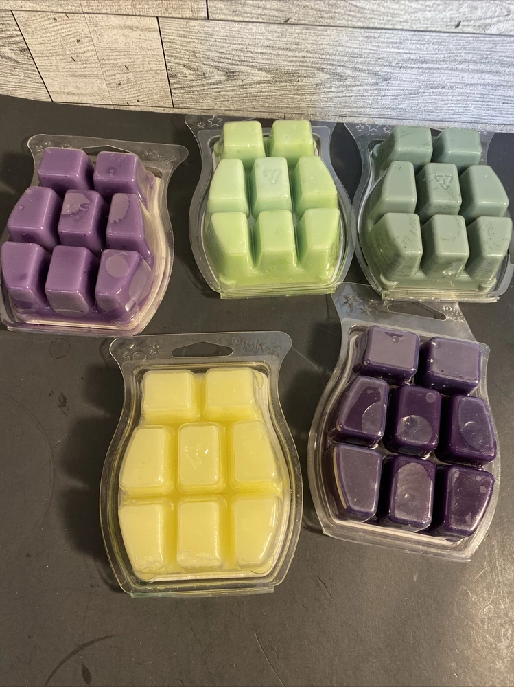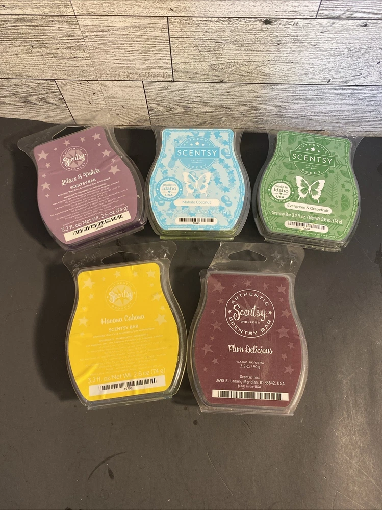 Enhance the ambiance of your space and indulge in the captivating fragrance of these Scentsy wax melts. This lot includes five assorted and mixed scents that offer an alluring Mediterranean vibe. The wax melts are made with high-quality wax and are perfect for aromatherapy and deodorizing any room. Measuring at 4.5 inches in length, 4.5 inches in height, and 3.5 inches in width, these small-sized wax melts come in a pack of nine. With slow-burning and odor-eliminating features, these wax melts are handcrafted to perfection. They are ideal for any occasion and are designed for use in any device installation area powered by a wall plug-in. The burning time of these wax melts is several hours, and they are made from high-quality wax with no noise level or humidity control. Order now and experience the captivating aroma of Scentsy wax melts today! All retired scents according to Scentsy website. They are: Havana Cabana, Evergreen & Grapefruit, Plum Delicious ( has part of package broken) Lilacs &Violets and Mahalo Coconut.