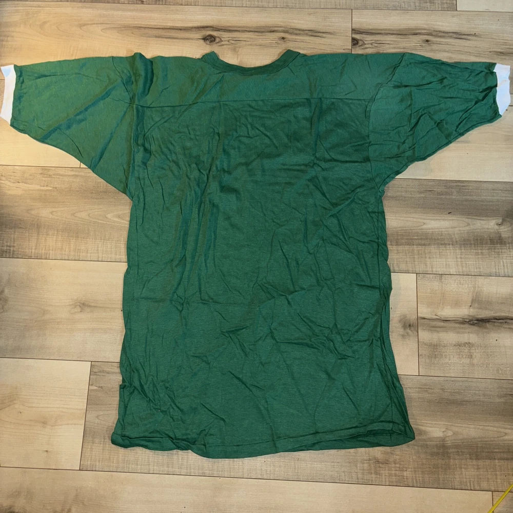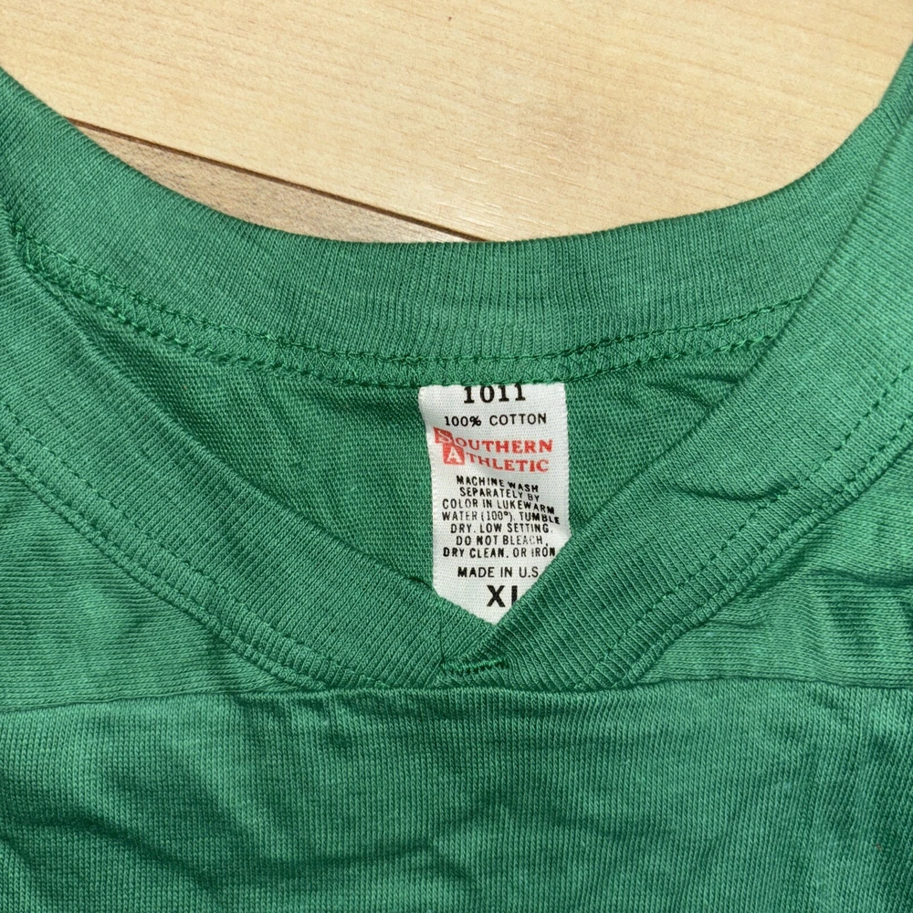 This lot includes five vintage retro quarter sleeve baseball jerseys in size XL. The jerseys come in a beautiful deadstock Kelly green color and are made of high-quality jersey material. Perfect for collectors or anyone looking to add some vintage flair to their wardrobe, these jerseys are a must-have. The material is soft and comfortable, making them great for wearing or displaying. Don't miss out on this opportunity to own a piece of vintage sports history.