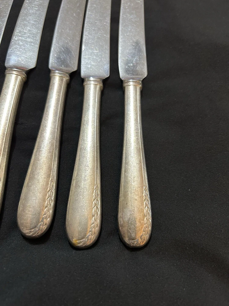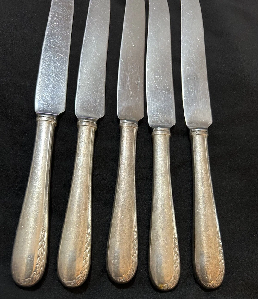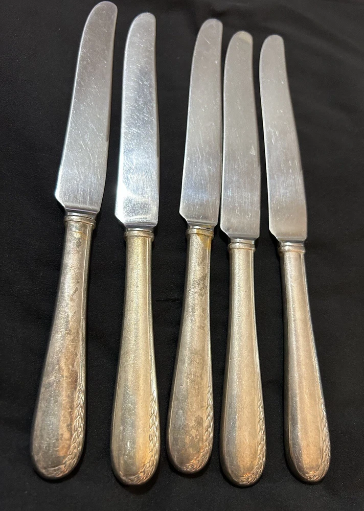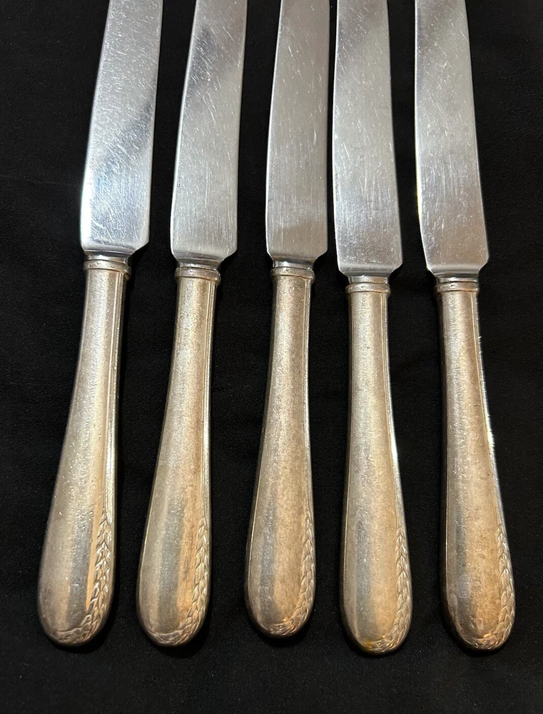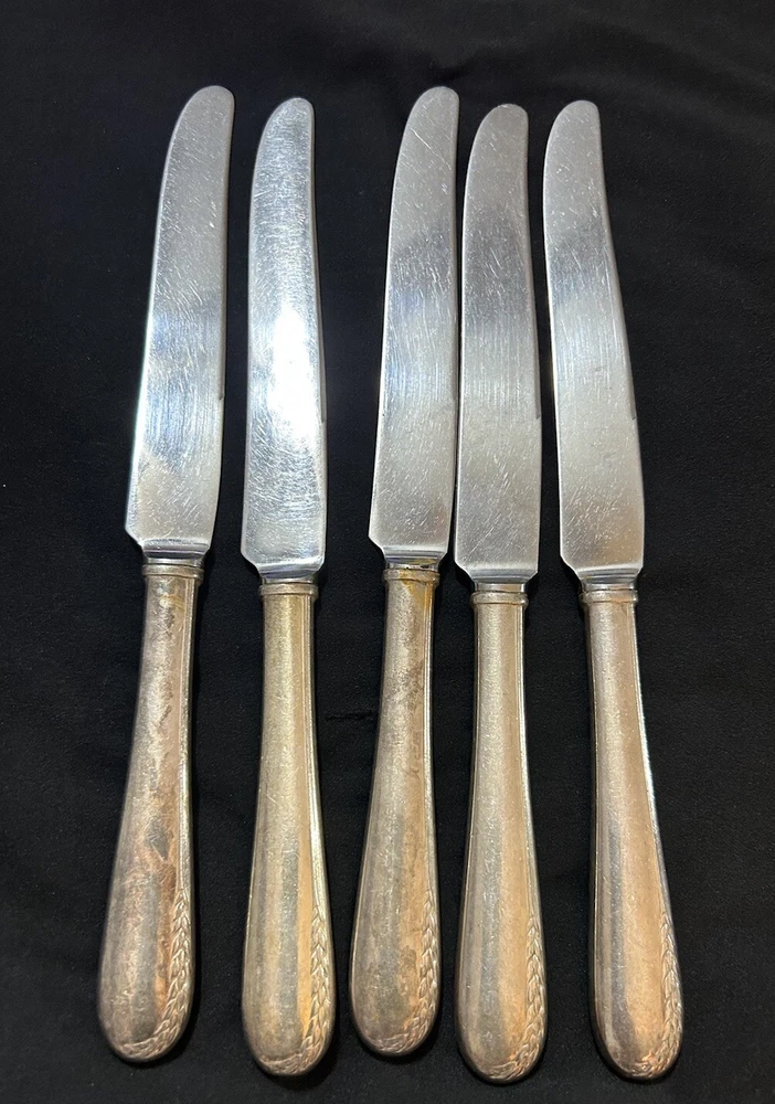Lot Of 5 Wallace Ultra Dinner Knives 9.5” Wheat Silver Plate 1934 Farmhouse