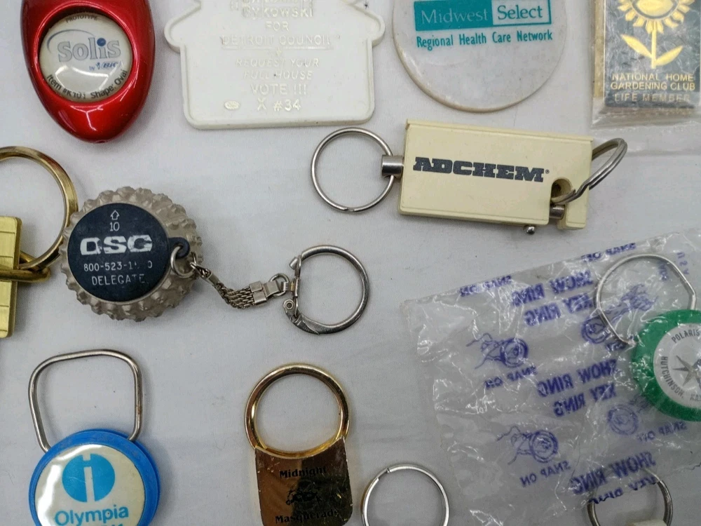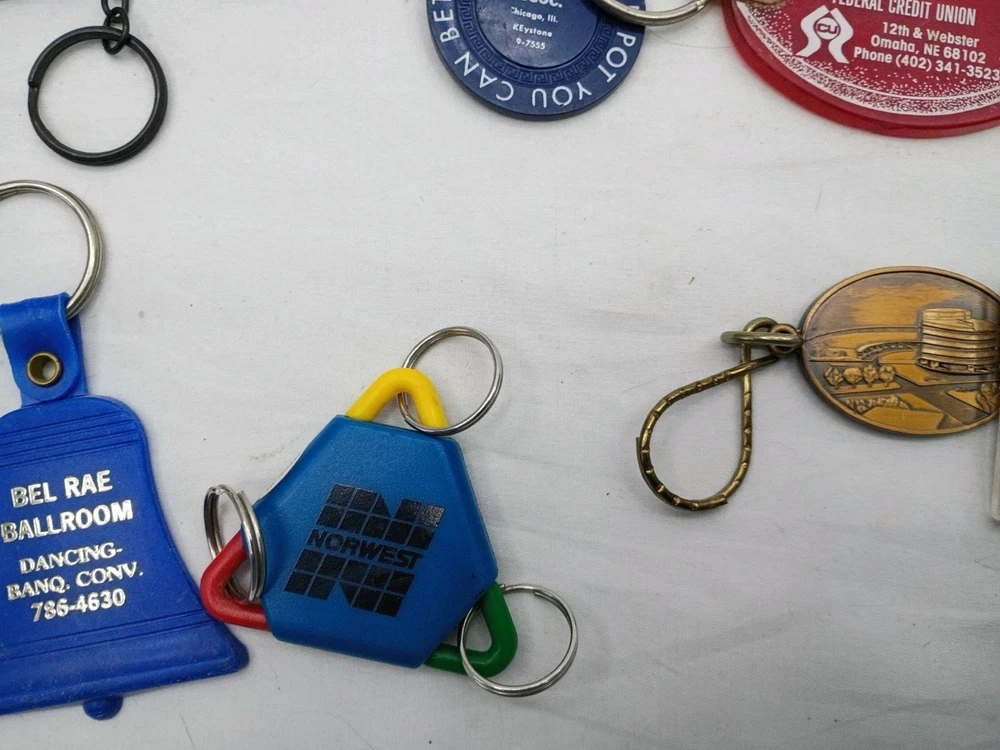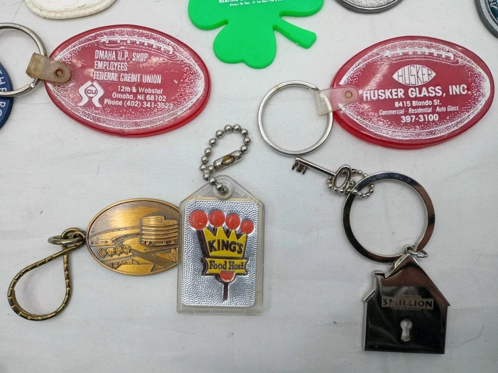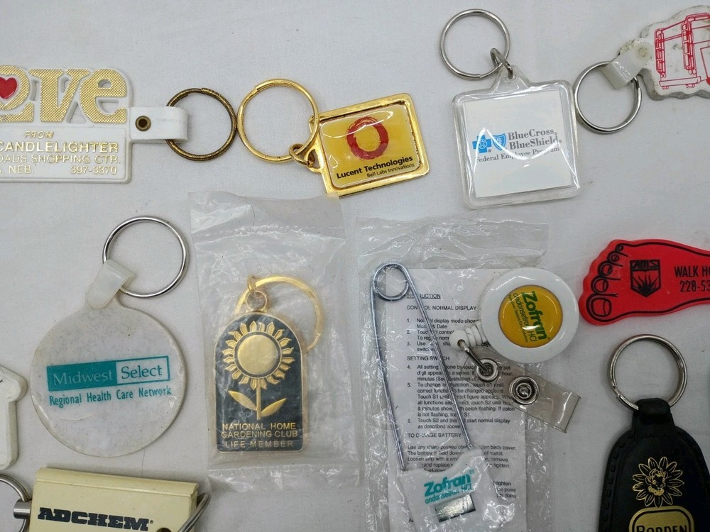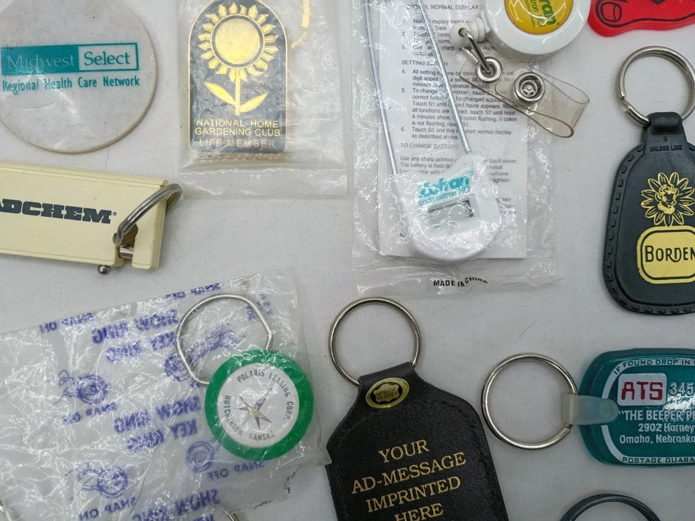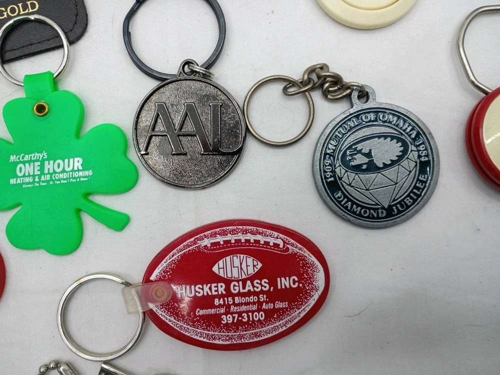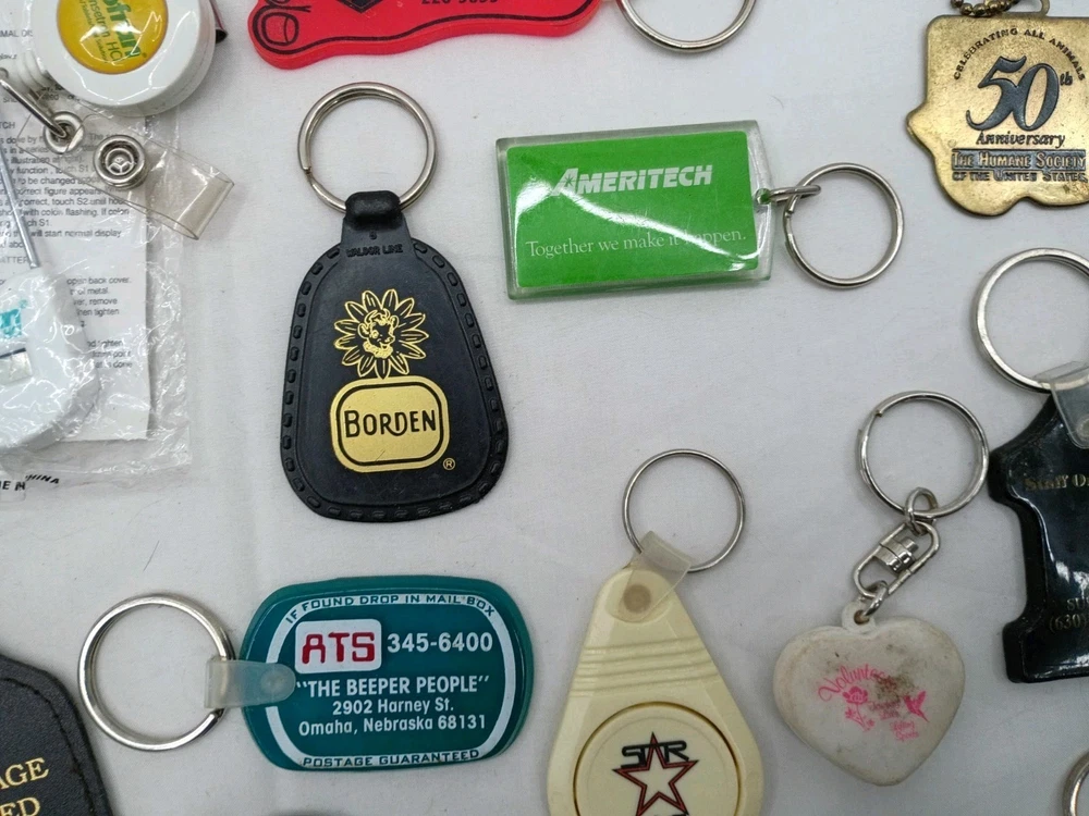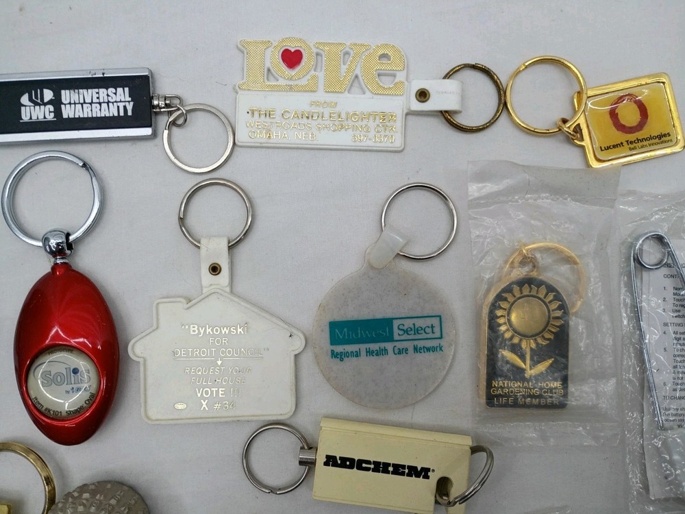 Lot Of 50 Vintage Advertising Promotional Keychains, Unique, Take A Look! See photos for contents and condition details. Ships Same Day!