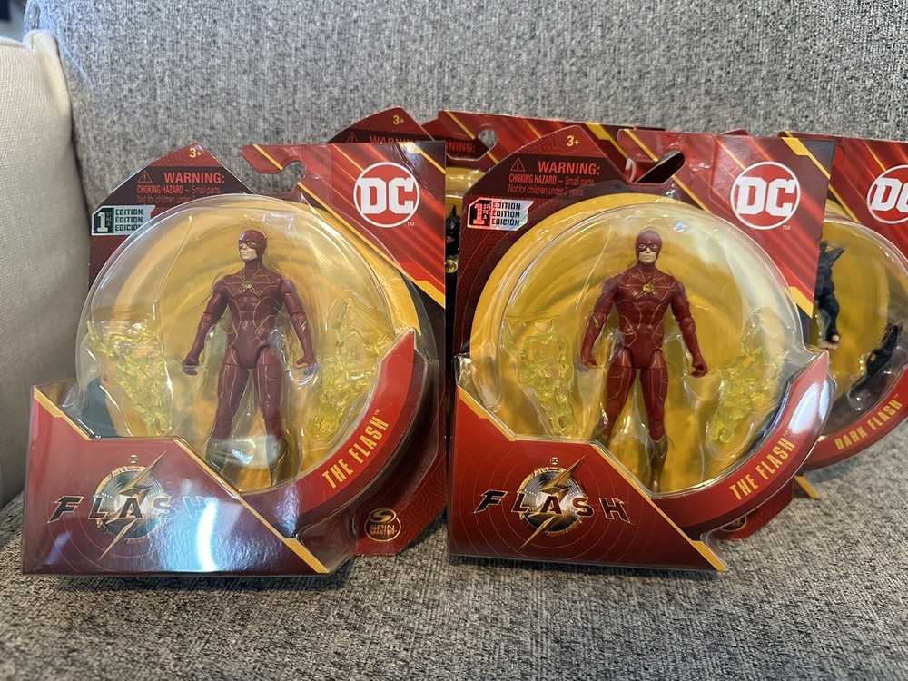 Lot of 7 DC 4 inch action figures new in packaging. Lot includes 1 The Flash young Garry figure, 2 The Flash figures, 2 Batman figures, and 2 Dark Flash figures.