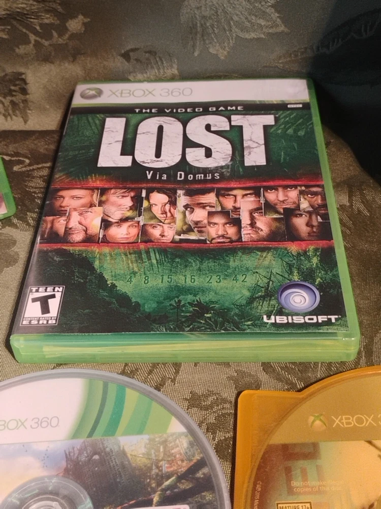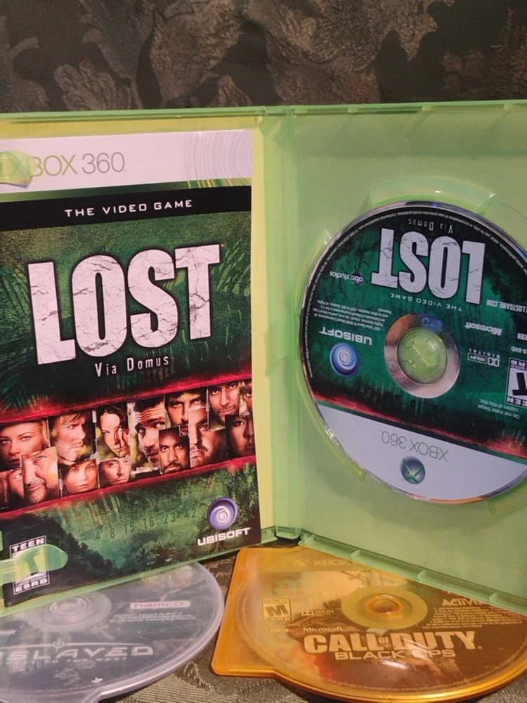 -FREE shipping included The lot includes - mass effect 2 - the video game lost via domus -the outfit -perfect dark zero - enslaved - call of duty Black ops - call of duty world at war The games are pre-owned with scratches but they all have been tested and work. Please review the pictures before you purchase the lot of games and don't forget to check out my other listings thanks.