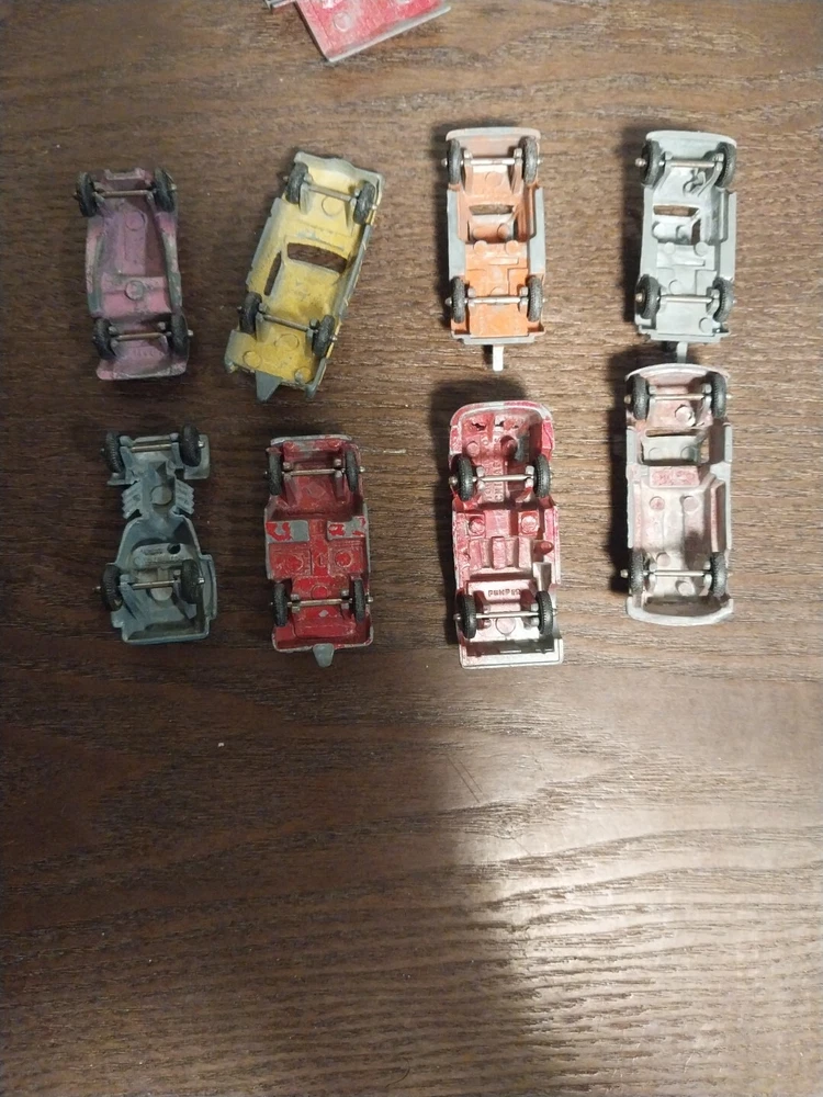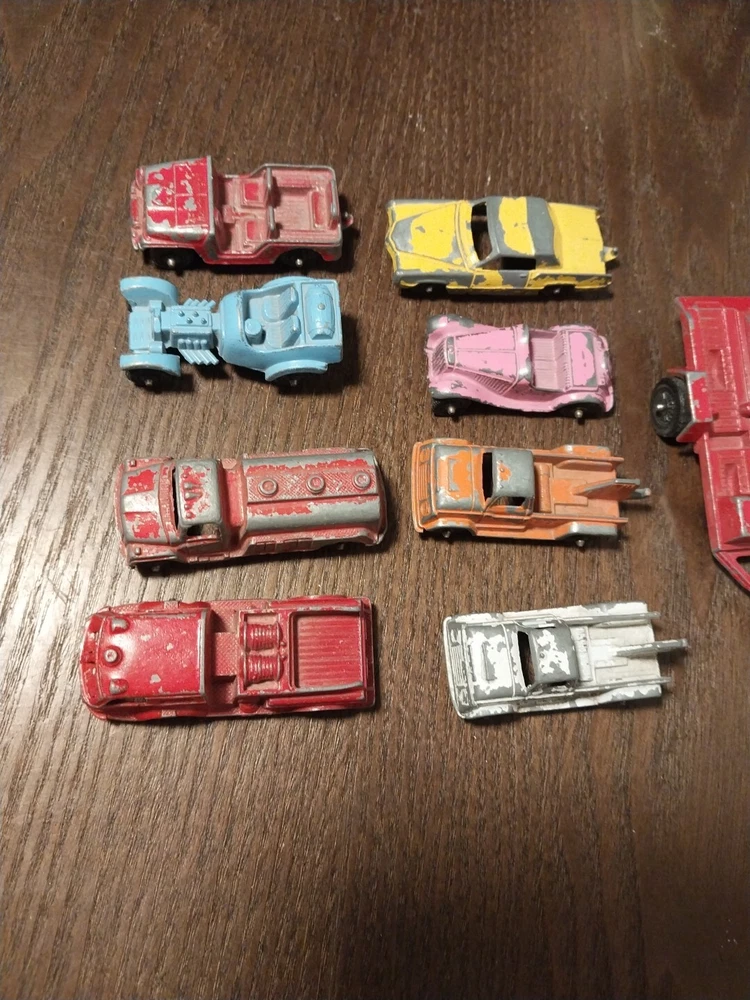 The product is a lot of 9 vintage Tootsietoy and Midgettoy mini diecast metal vehicles, including cars and trucks. These vehicles are made of diecast material and feature a multi-color design. The vehicles are from the brand Tootsietoy and are in the shape of Jeeps. Perfect for collectors of vintage diecast vehicles, this lot offers a variety of mini vehicles in different styles and colors.