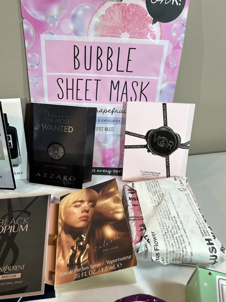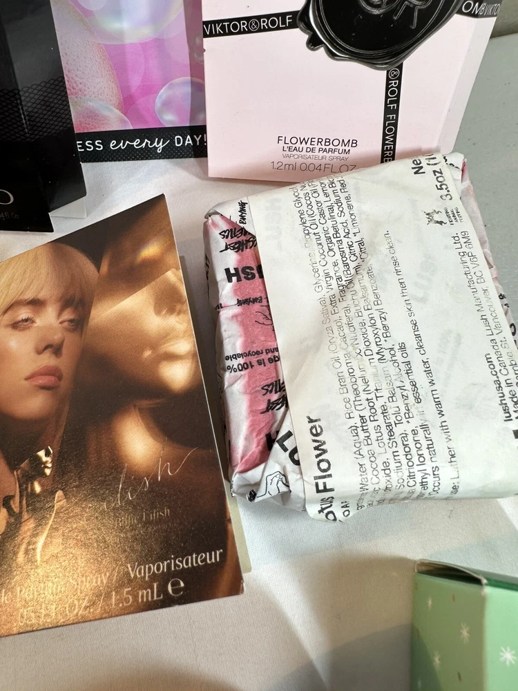 Lot Of Sample Perfumes & Beauty Items! Mario Badescu, Lush, Living Proof, Ouai, Chi, Billie Eilish, etc. See pictures.