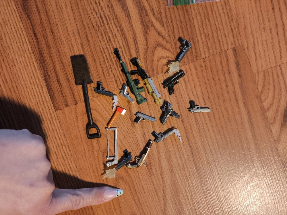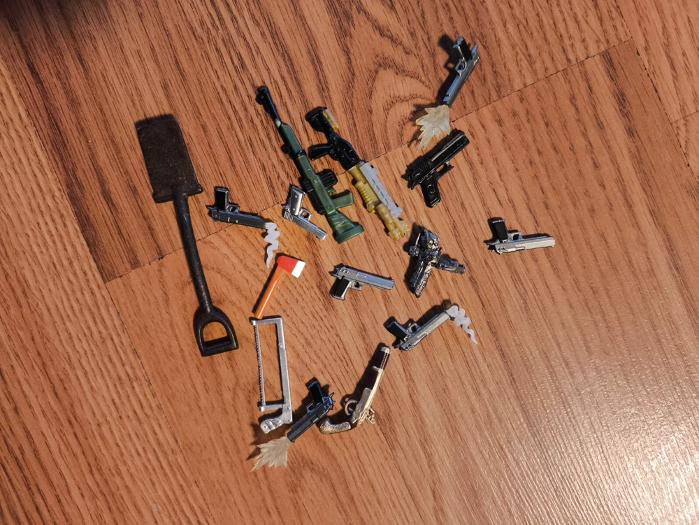 Explore the realm of imaginative play with this diverse lot of small, tiny weapon toys, perfect for action figure enthusiasts. Each piece in this collection is designed to complement your existing sets, enhancing adventures with an array of creative props and accessories. Whether you're a collector or a playful mind looking to expand your miniature arsenal, these unbranded items offer limitless potential for storytelling and role-playing. Dive into the details of each piece and watch your action figures come to life with these meticulously crafted tiny weapons.