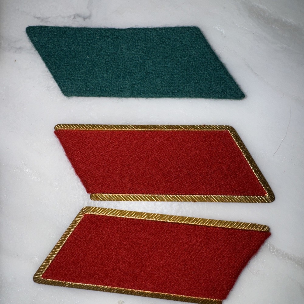 Mixed lot of Soviet / Russian military uniform insignia and shoulder board pieces. Includes shoulder board backings, fabric collar tabs, and an embroidered Soviet red star patch. Items appear to be surplus or reproduction and are sold as-is. Great for collectors, reenactors, or display. Includes (as pictured): • 1 Soviet-style green slip-on shoulder board • 1 olive hexagonal sleeve or shoulder patch backing • 1 embroidered red & gold Soviet star patch • 1 gold-tone shoulder board backing plate with red cloth • 1 red fabric tab • 1 green fabric tab Condition • Pre-owned • Some items show light wear from age/storage • Sold as a mixed lot Perfect for anyone collecting Soviet military memorabilia or creating displays, reenactments, or costume builds.