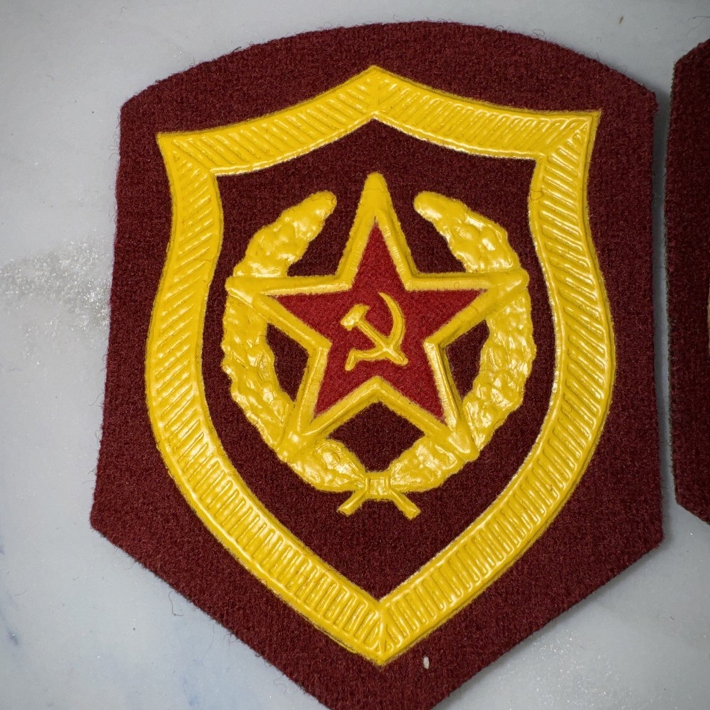 Mixed lot of Soviet / Russian military uniform insignia and shoulder board pieces. Includes shoulder board backings, fabric collar tabs, and an embroidered Soviet red star patch. Items appear to be surplus or reproduction and are sold as-is. Great for collectors, reenactors, or display. Includes (as pictured): • 1 Soviet-style green slip-on shoulder board • 1 olive hexagonal sleeve or shoulder patch backing • 1 embroidered red & gold Soviet star patch • 1 gold-tone shoulder board backing plate with red cloth • 1 red fabric tab • 1 green fabric tab Condition • Pre-owned • Some items show light wear from age/storage • Sold as a mixed lot Perfect for anyone collecting Soviet military memorabilia or creating displays, reenactments, or costume builds.