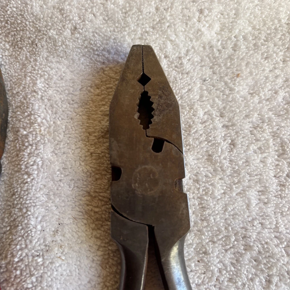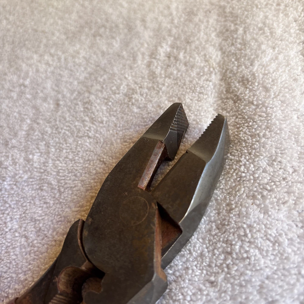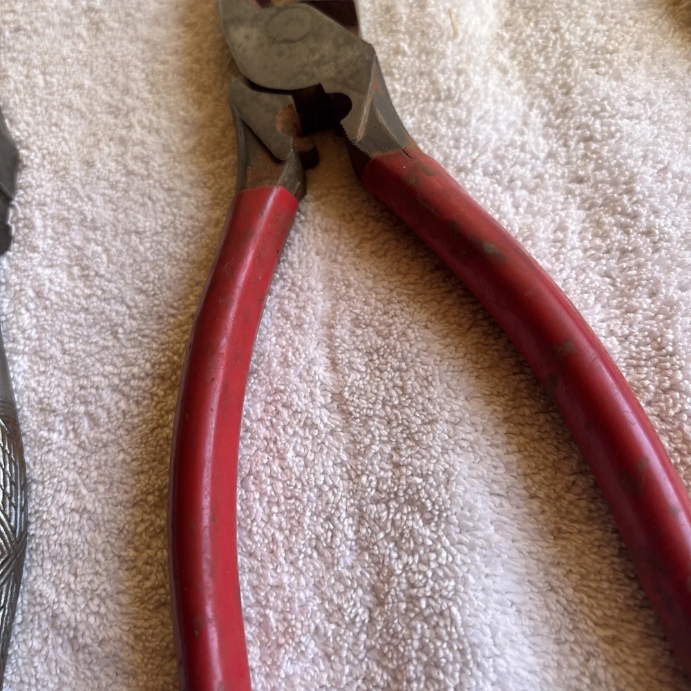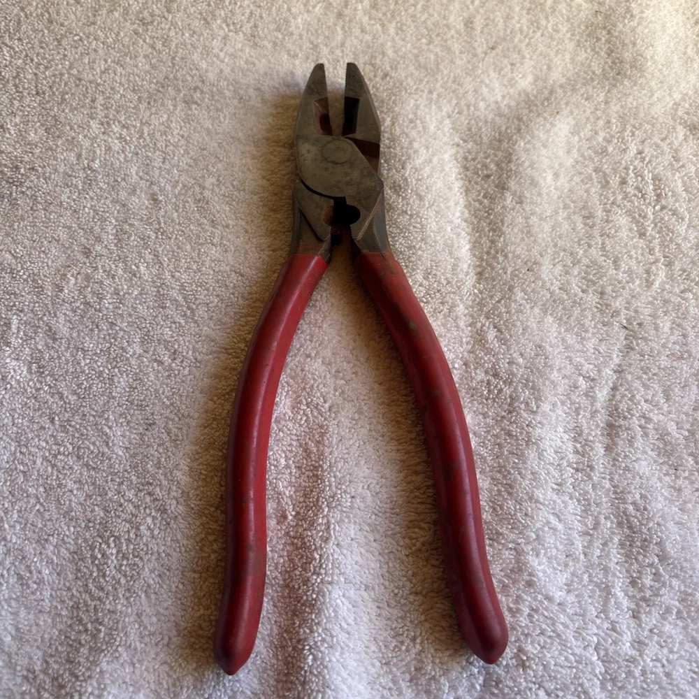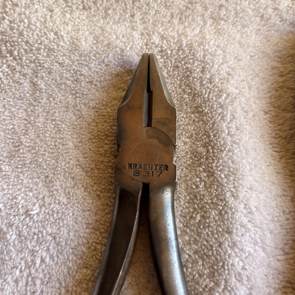 Selling is a vintage lot of three lineman pliers. These were found in a local estate and are used. The red handled one and the larger all steel one are unnamed unlabeled no manufacture name. The small all set set are kraeuter brand. The are high quality and operate fine. The jaws are crisp not showing lots of hard use. There is rust on all three they have been buffed. Let me know if you have any questions. I generally ship within two days of the completed sale. I generally ship USPS ground advantage.