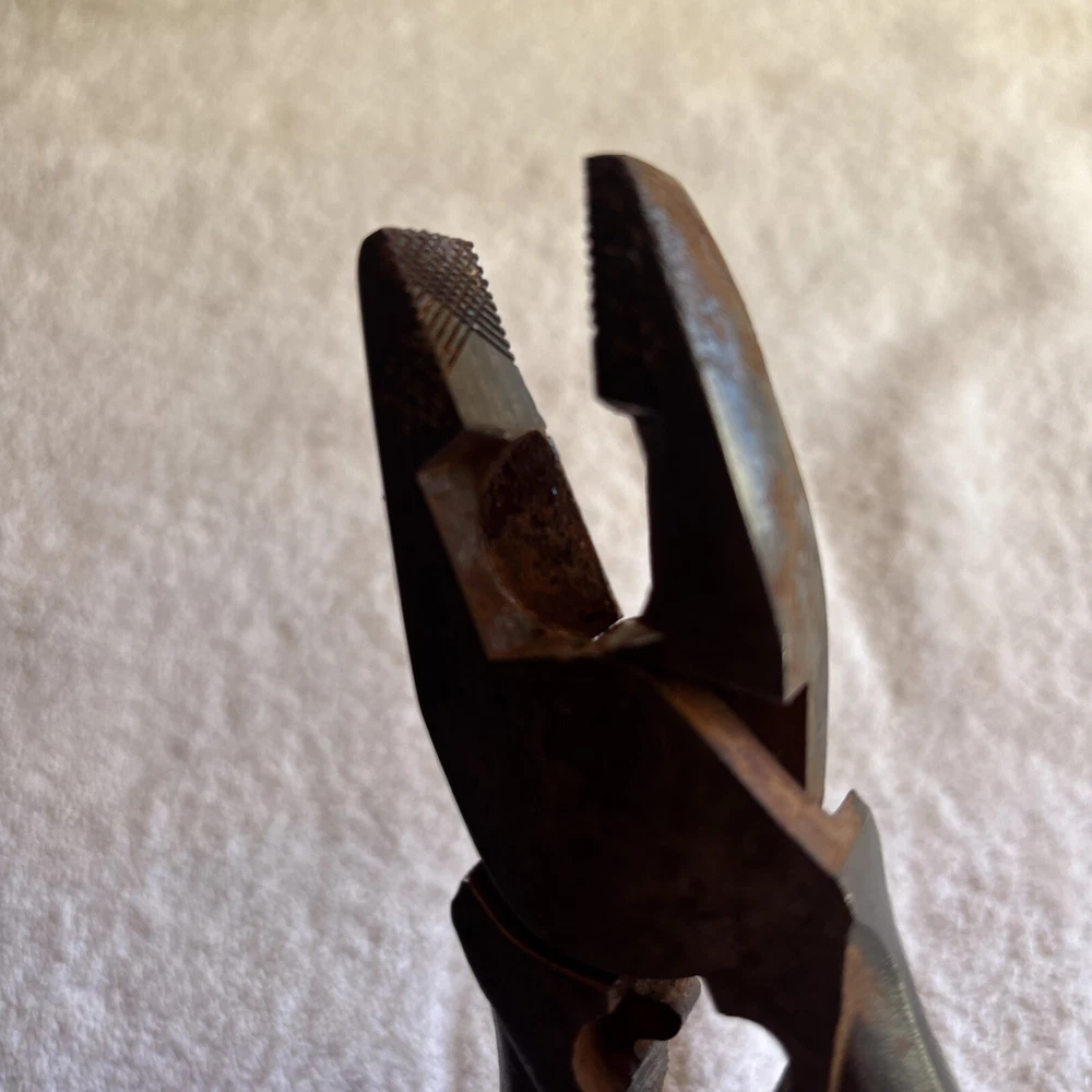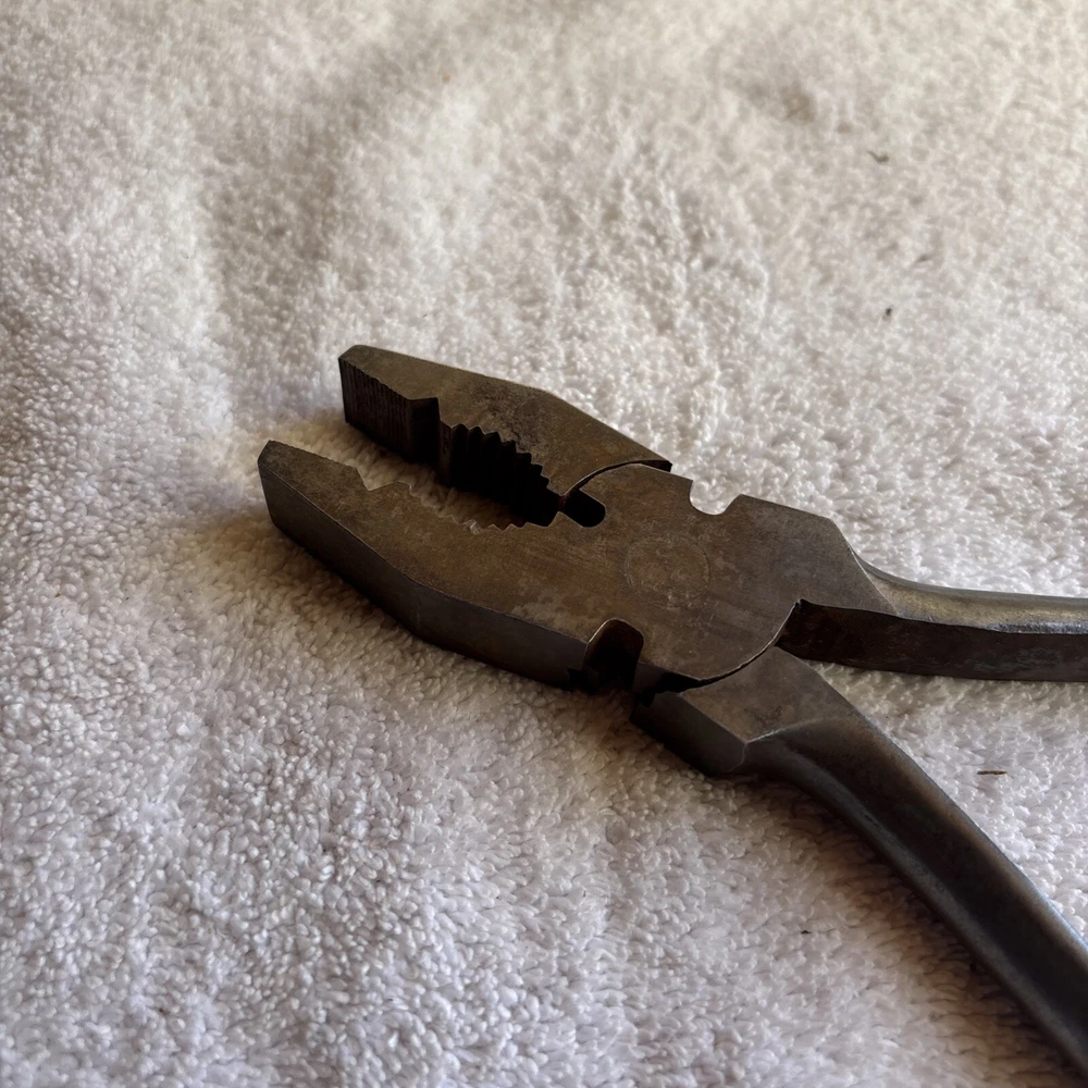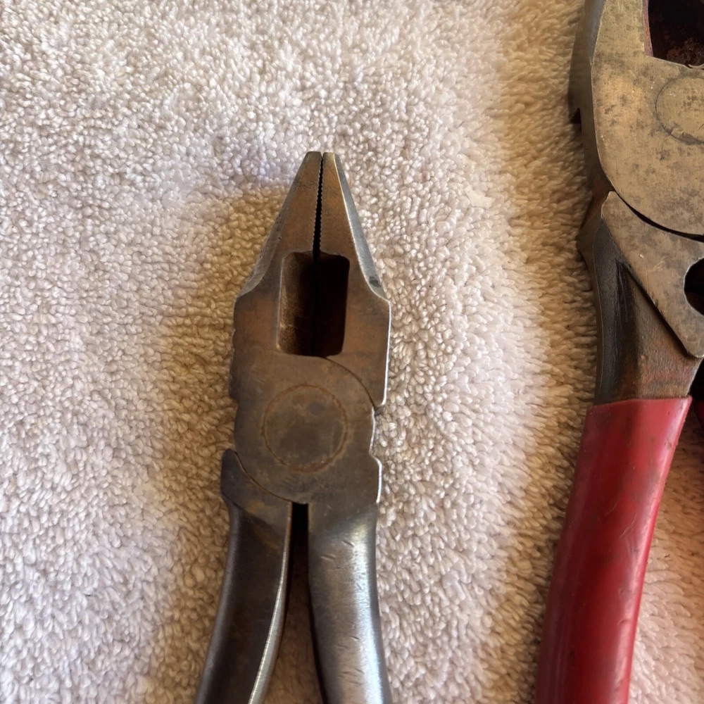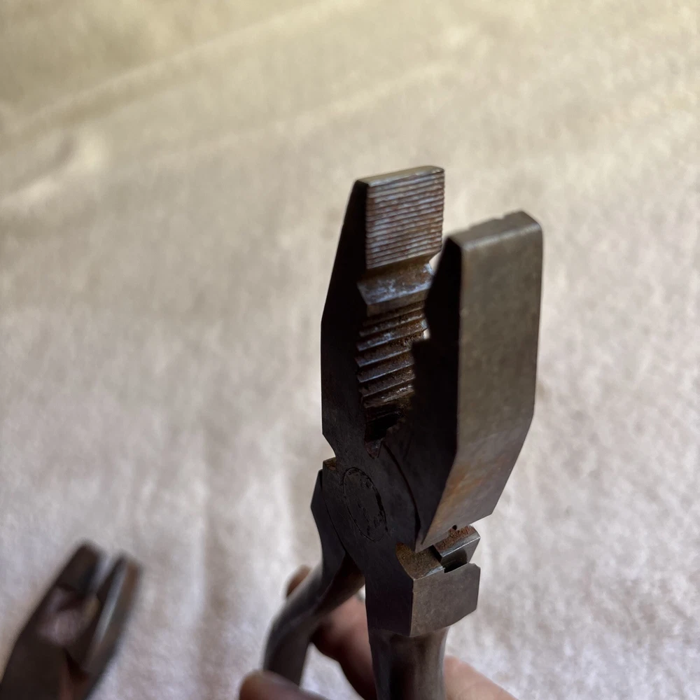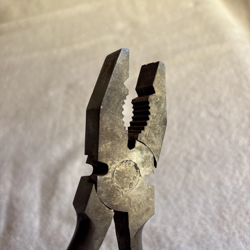 Selling is a vintage lot of three lineman pliers. These were found in a local estate and are used. The red handled one and the larger all steel one are unnamed unlabeled no manufacture name. The small all set set are kraeuter brand. The are high quality and operate fine. The jaws are crisp not showing lots of hard use. There is rust on all three they have been buffed. Let me know if you have any questions. I generally ship within two days of the completed sale. I generally ship USPS ground advantage.