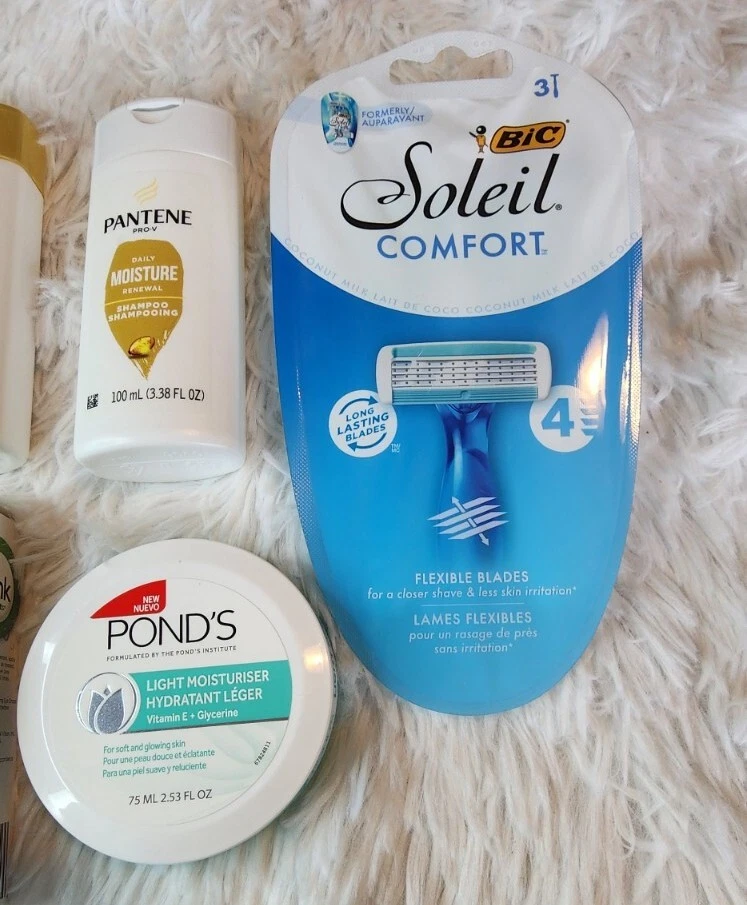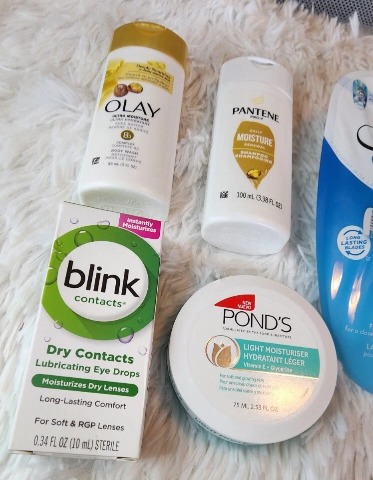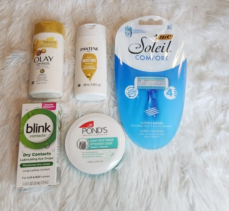 Lot Of Women 5 Personal Care Travel Size Items Condition is NEW Best Brands. All products Sealed. The lot includes 5 items personal care; 1 Olay Ultra Moisture Body Wash 3.oz 1 Pantene Daily Moisture Renewal Shampoo 3.38.oz 1 Pond's Ligth Moisture 2.53 .oz 1 Bic Soleil Comfort Flexible Blades Pack of 3 1 Blink Cantacs Dry contacs Lubricating Eye drops 0.34 .oz Exp Date 05/09/2025 The products will be sent exactly as they are in the photo. Shipped with USPS First Class Mail Package. Fast & Free Shipping. Envio rapido a PR y EU desde Florida US.