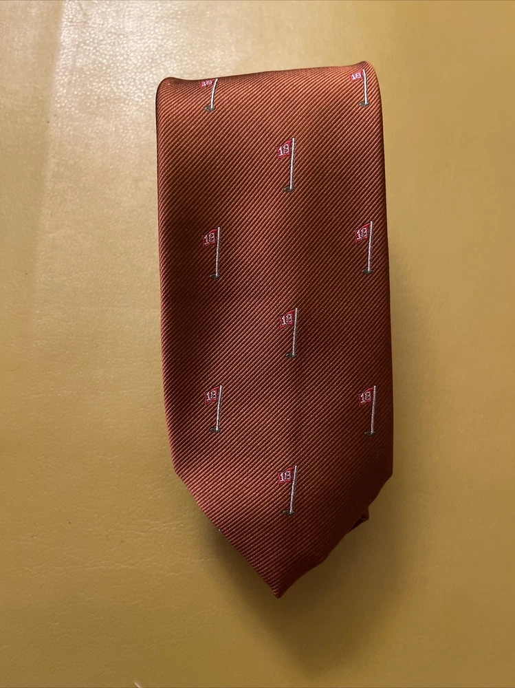 Lot 3 New Golf Ties by Rooster You get 2 pink ties and 1 rust colored tie The ties are made of 75% Silk 25% Polyester They make a great gift Add some style to your wardrobe with these Rooster golf-themed neckties. Made from a luxurious silk blend fabric, these ties come in a set of three with a multicolor pattern and feature golf balls, sticks, and the iconic 18th hole. Perfect for any golf enthusiast or for adding a touch of personality to your formal attire. These ties are of classic length and width, and are attached by tying. Buy with total confidence from a seasoned Ebayer who ships fast Happy Shopping!