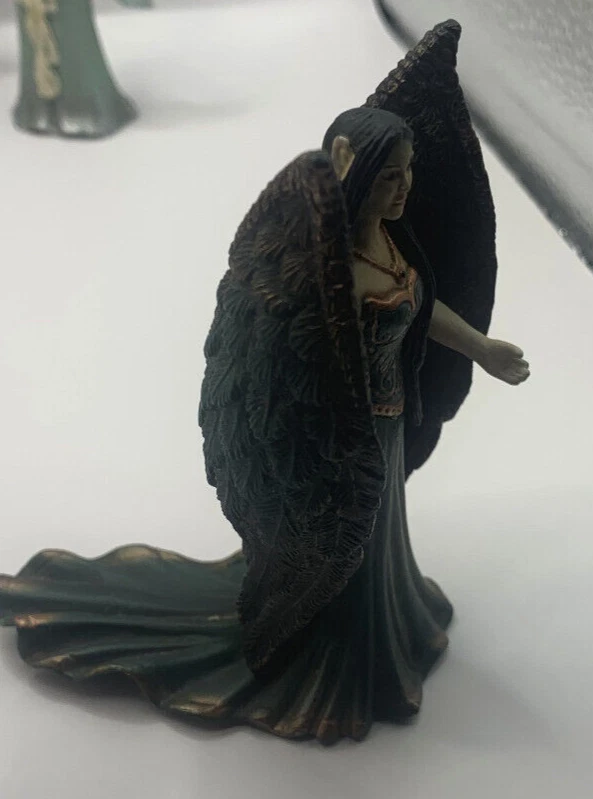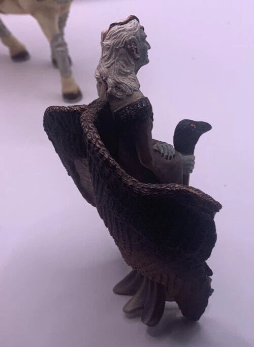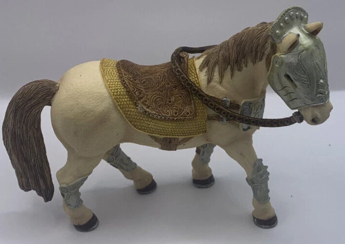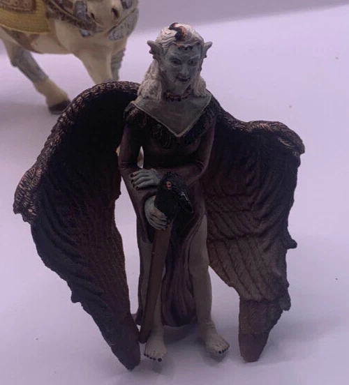 Lot of three Schleich World of Elves Figures and one armored horse. I think the horse normally goes to a Knight. The fairies have some paint wear and play wear. They as well have dust and there is a little silvery paint on the bottom of the skirt of the feathery winged black haired Fairy. Horse has some paint rubbed on it from something else. Nonsmoking home but we have pets.