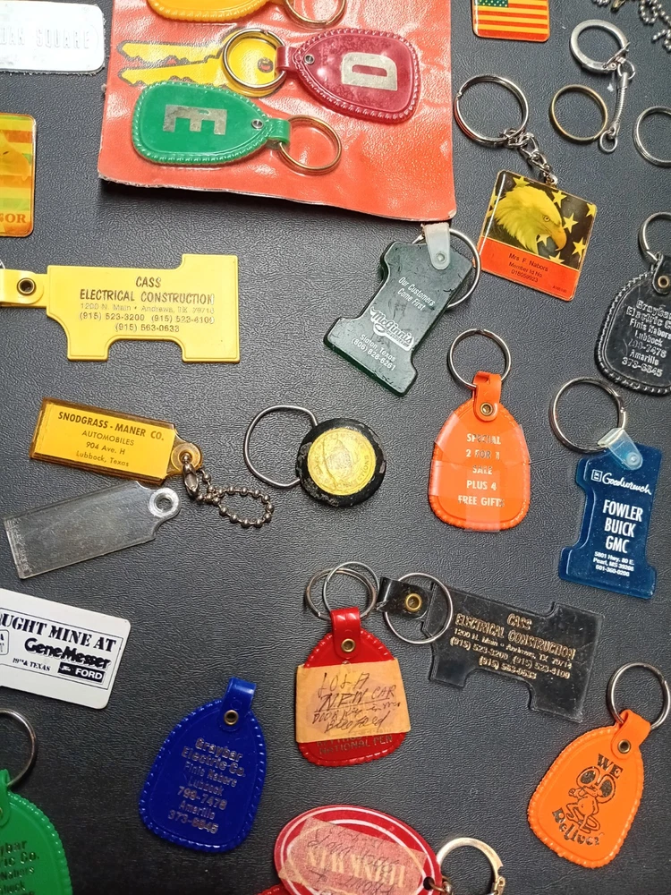 Lot Vintage Keychains Advertising Mixed Key Bobs Some New Old Stock, and Parts