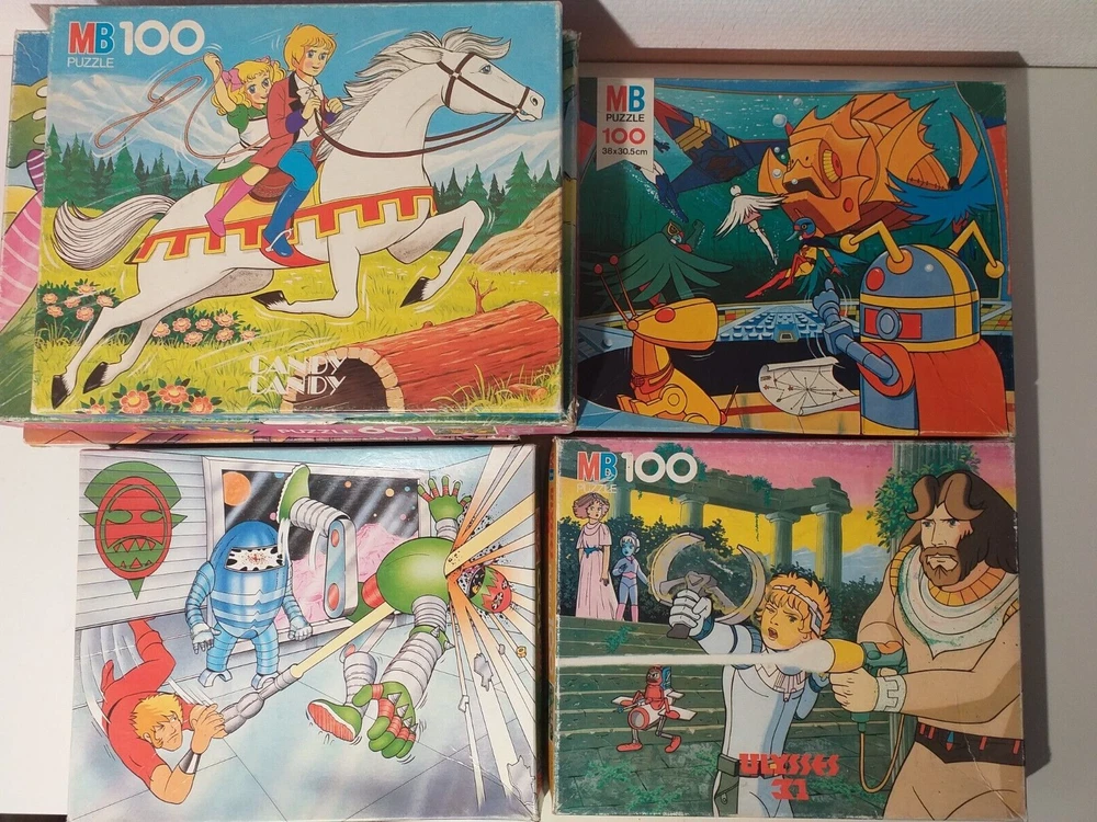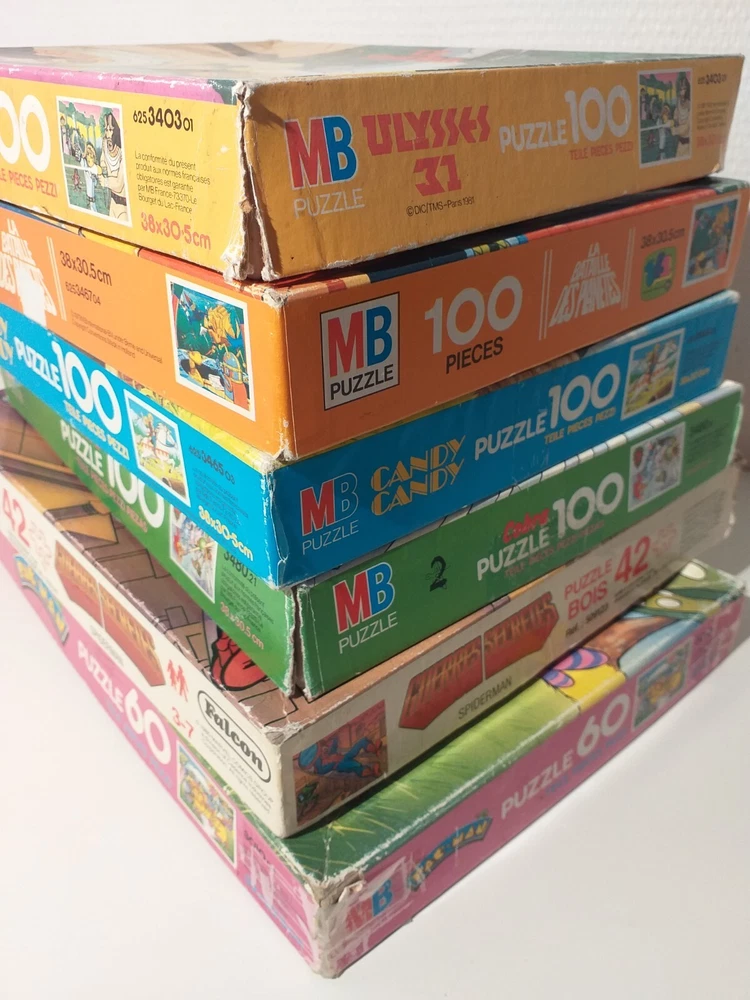 Ils sont tous complets. Ulysse 31, Candy, la Bataille des planètes, Cobra, Pac-Man, Marvel Secret Wars. Les pièces sont en bon état général. Les boites sont usées et abîmées, surtout celle du Marvel Secret Wars. Livraison Colissimo possible mais tarif plus élevé, me contacter. Ask me for international shipping costs.
