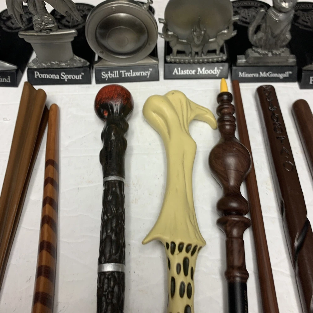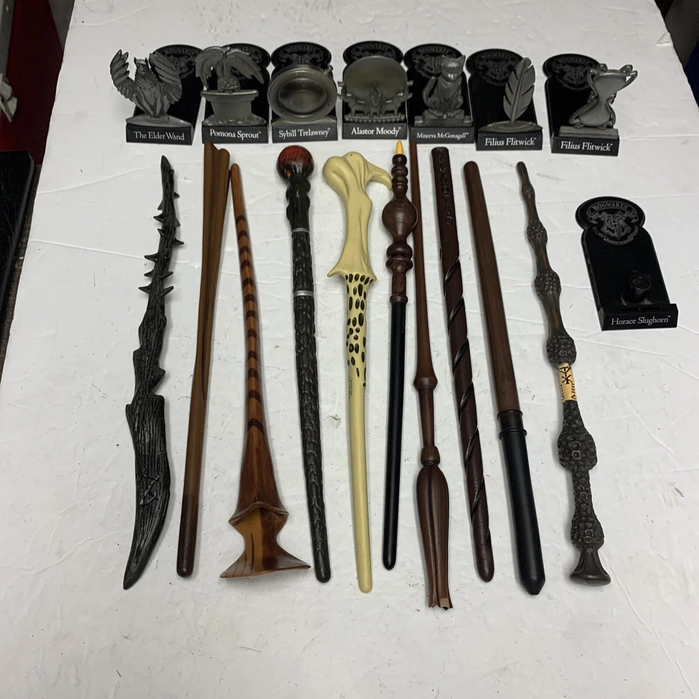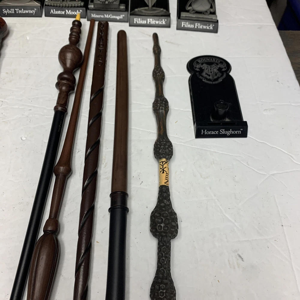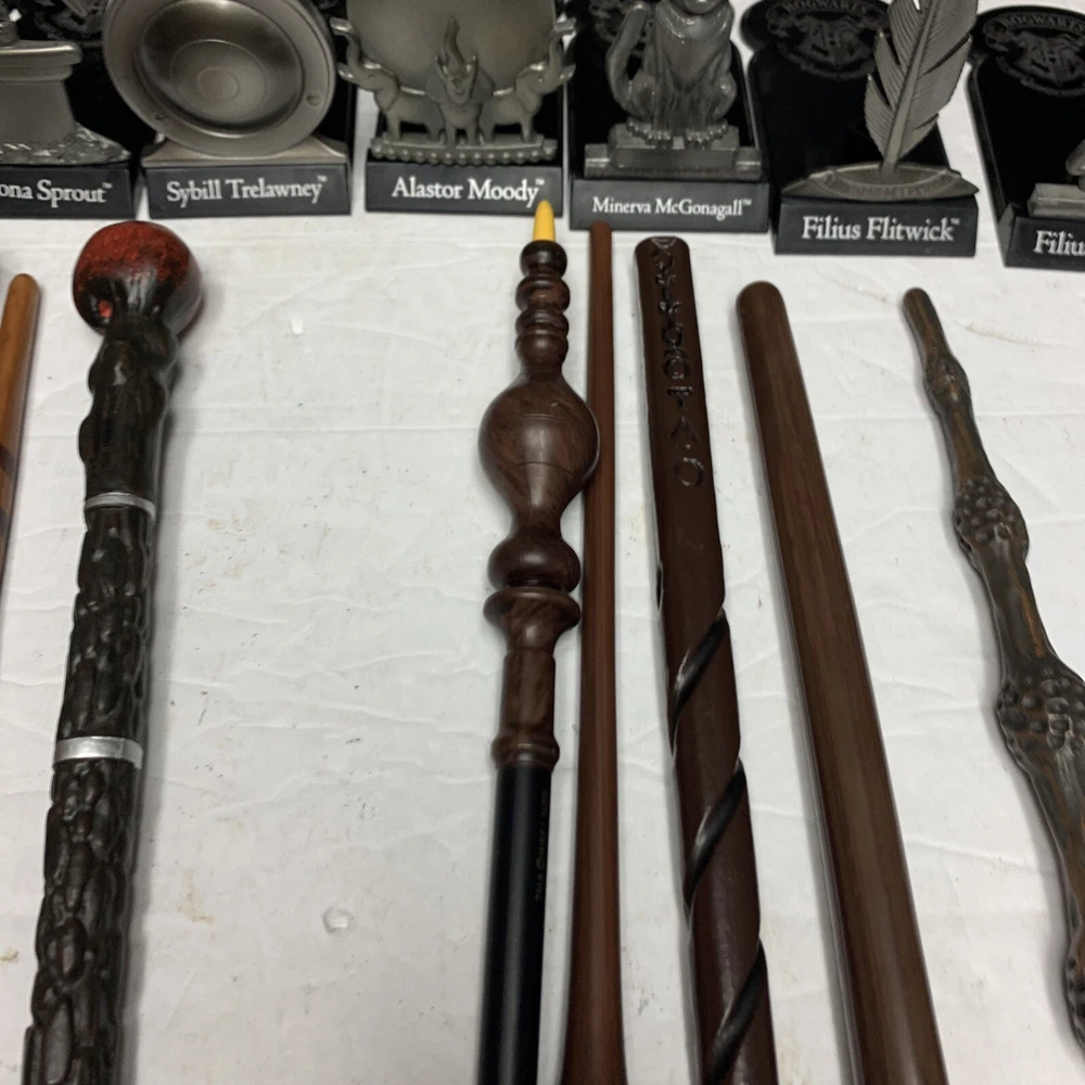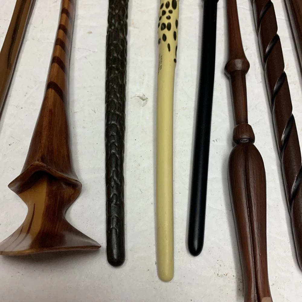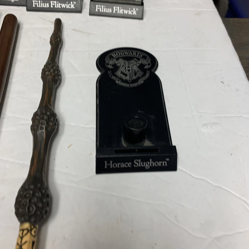 The items have some signs of wear and use to them. There is marks in various places and a bend to the one wand. There is only 8 bases and there is a duplicated base and a base without a metal part. See pictures to see the items.