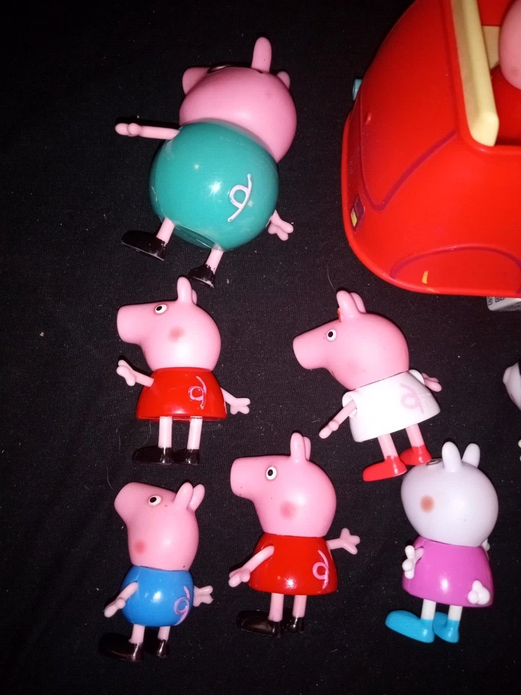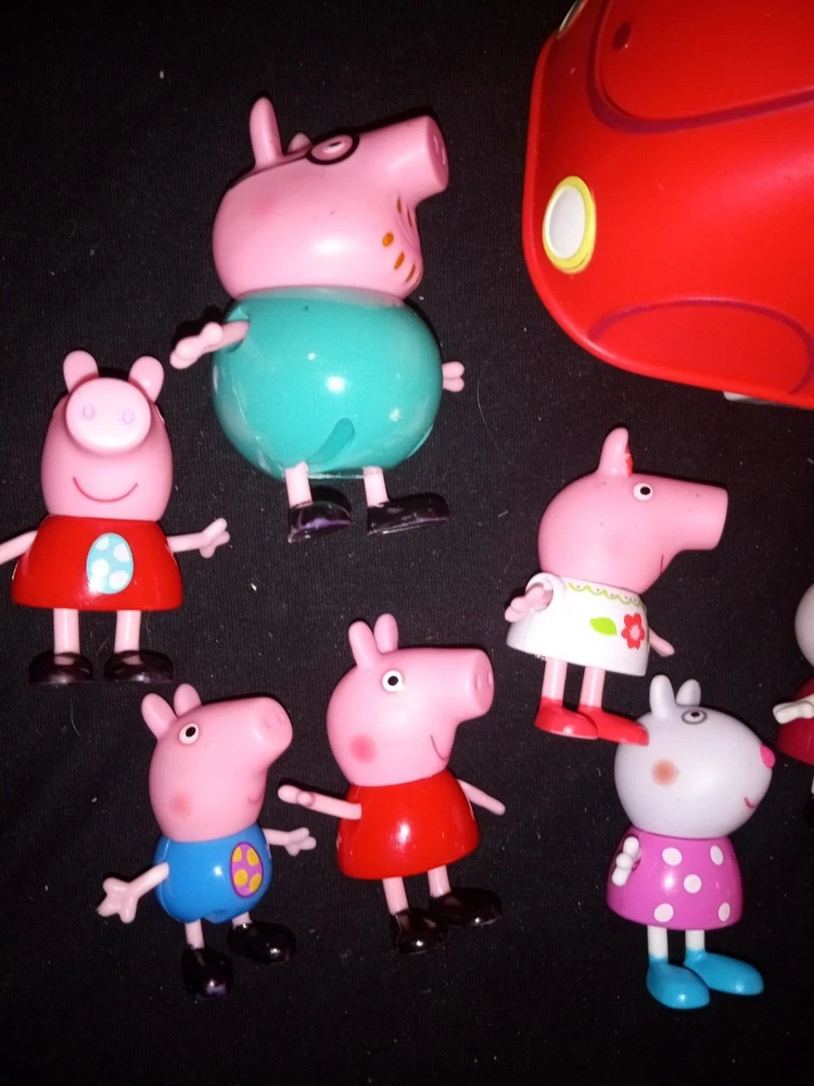 Color: Red Type: Action Figure gtin13: Does not apply Original/Licensed Reproduction: Original Character: Peppa Pig Movie: Cars Features: Talking Items Included: 10 peppa pig figures Age Level: 3+ Material: Plastic UPC: Does not apply Vehicle Type: Car Model: Peppa Pig All Around Peppa's Town Theme: Cartoon & TV Character TV Show: Peppa Pig Personalize: No Franchise: Peppa Pig Vintage: No Animal Species: Pig