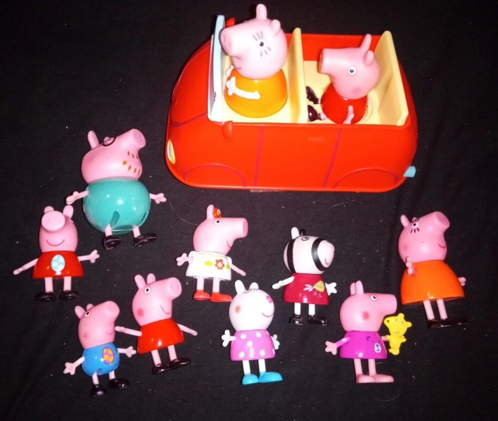 Lot of 10 PEPPA PIG Figures+All Around Town TALKING RED CAR-Tested Works FreeShp