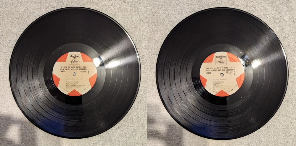 This listing is for the following 10 vinyl LP albums (12" records, 33 RPM): Buck Owens and His Buckaroos - Tall Dark Stranger (1969, ST-212) Buck Owens and His Buckaroos - Best of Buck Owens Vol. 2 (1968, ST 2897) Johnny Cash - Johnny Cash at San Quentin (1969, CS 9827) Charlie Rich - She Called Me Baby (1974, APL1-0686) Pee Wee King - Pee Wee King's Biggest Hits (1971, CAS-2460) Various Artists - Something Special (SL-6655) Jerry Reed - Hot A' Mighty! (1973, LSP-4838) Mac Davis - Mac Davis (1973, KC 32206) Joe Stampley - All These Things (1976, DOSD-2059) B.W. Stevenson - My Maria (1973, APL1-0088) Records are in fair to good condition with no warping and include jackets and inner sleeves. Some jackets have holes punched in the left side.
