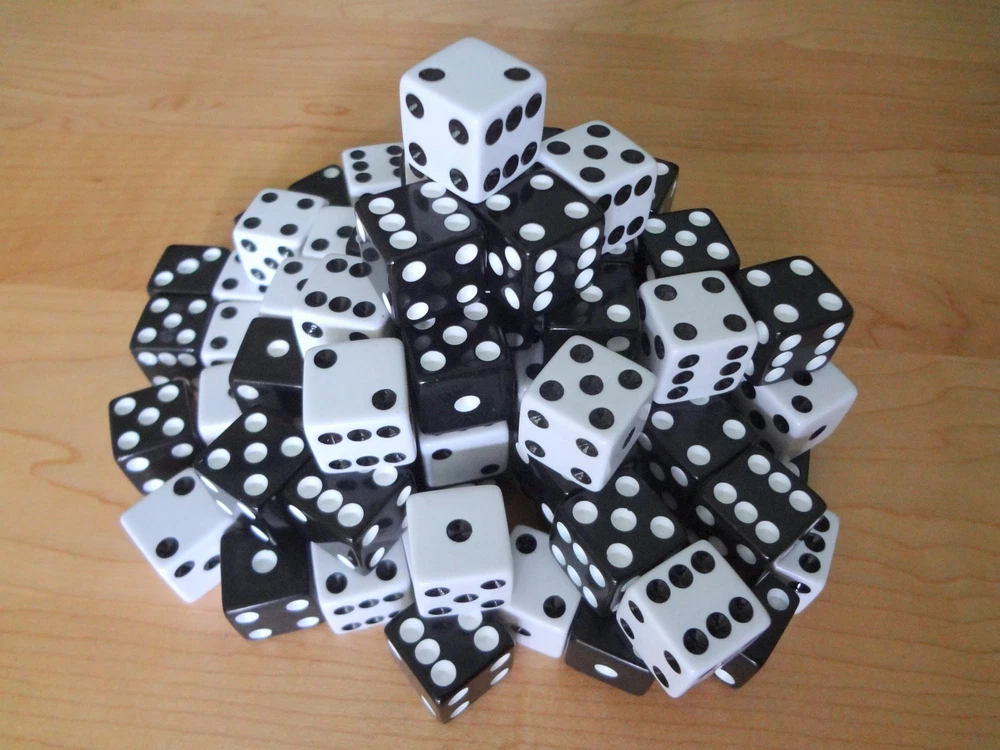 Lot of 100 Black and White D6 Dice 16mm 16 mm Square Gaming Casino