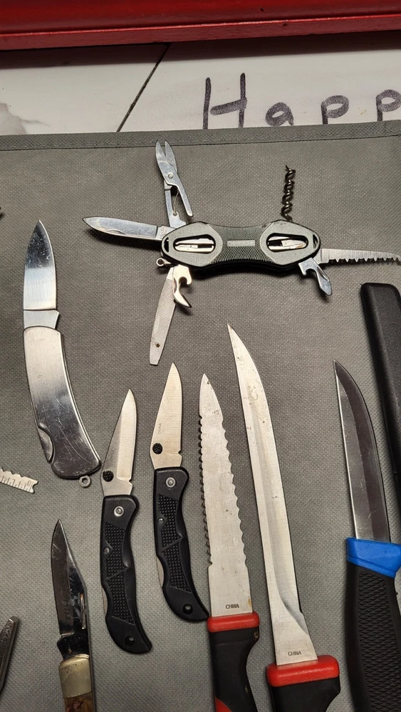Lot of 13 pocket knives shiv knives multi-tools. All tools are functional some of the multi-tools are a little loose. Two frost pocket knives.