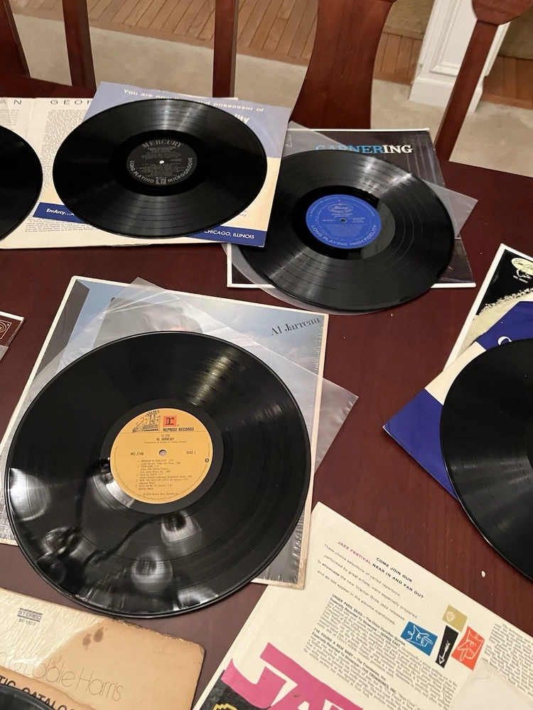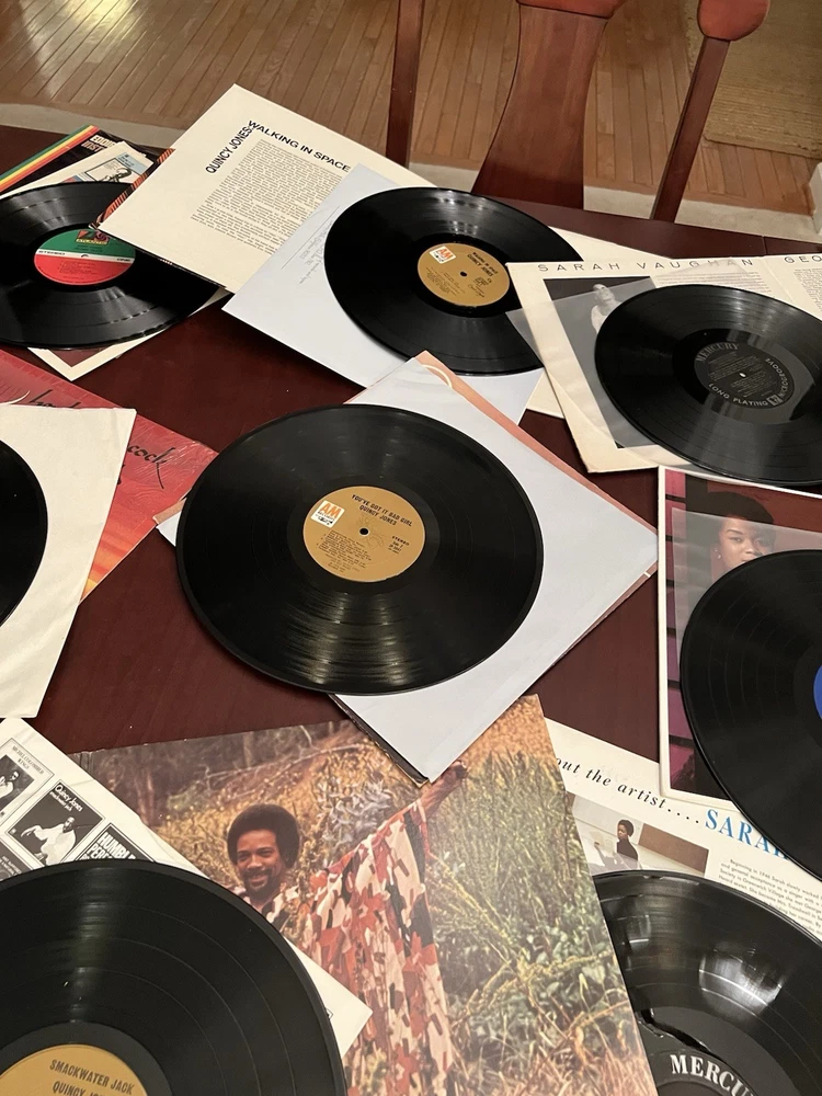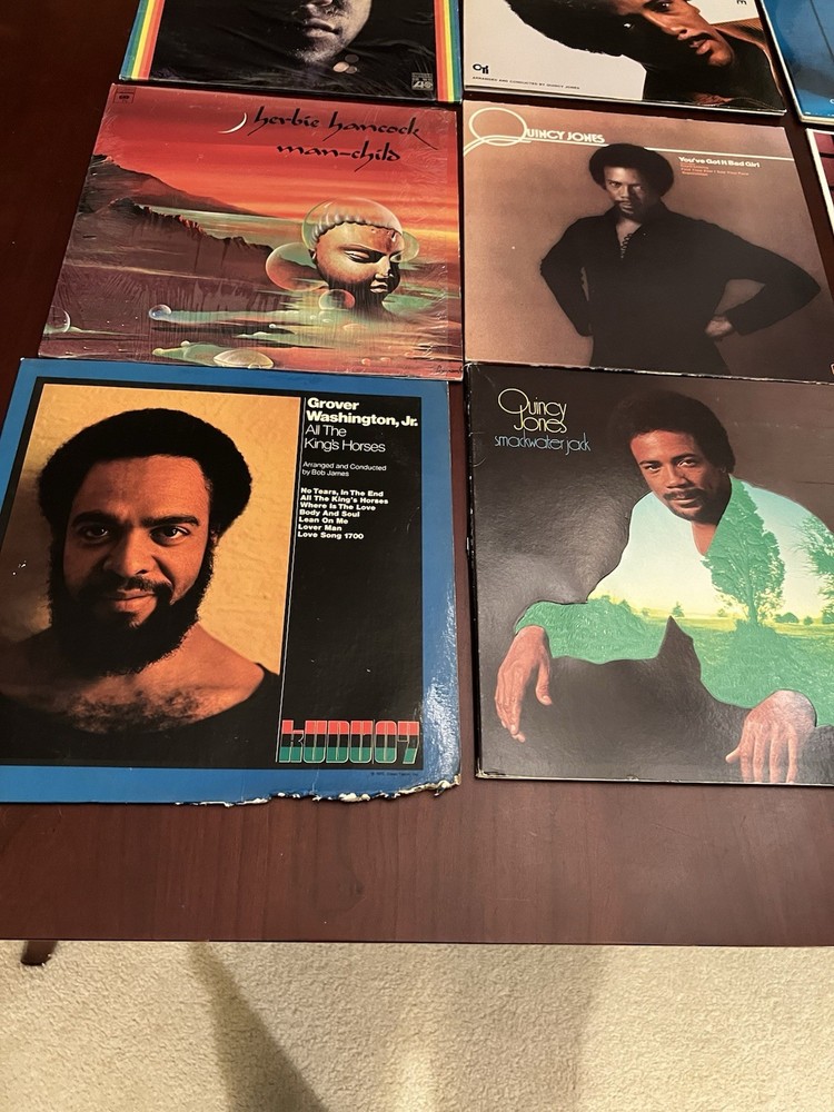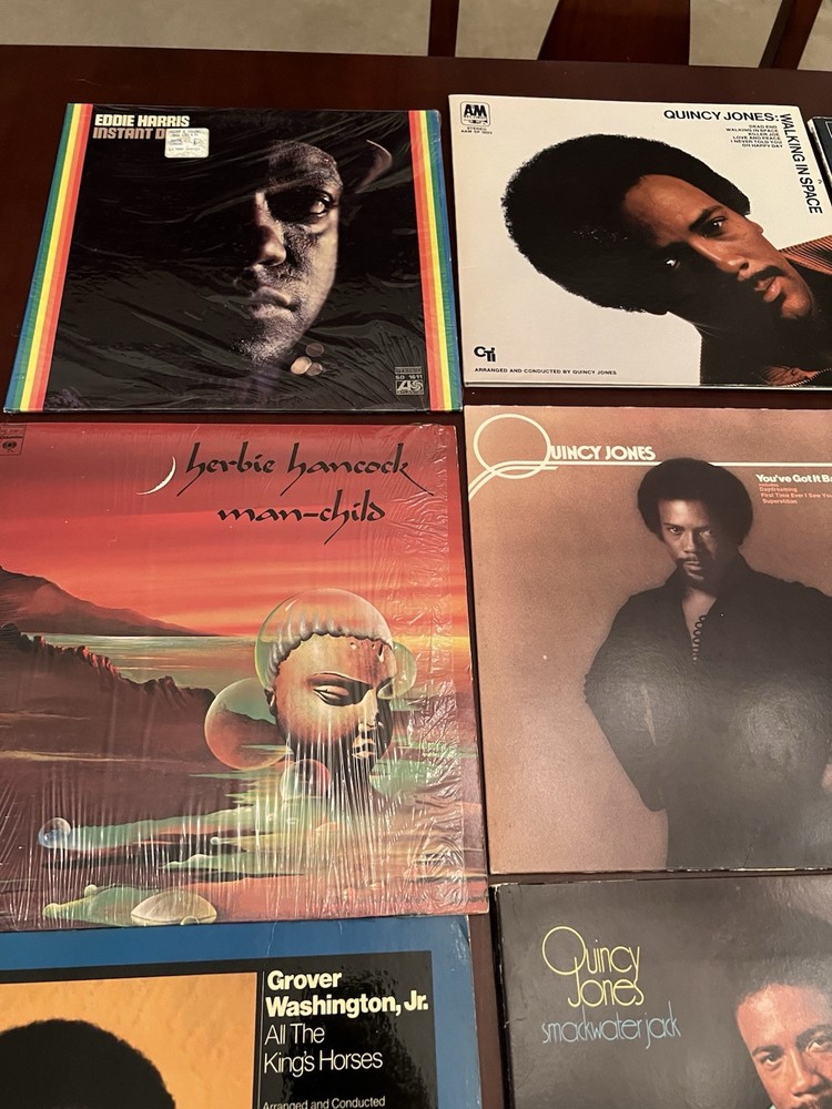 This lot of 16 vintage vinyl albums features various jazz artists such as Herbie Hancock, Eddie Harris, Al Jarreau, and Quincy Jones, among others. The records are in LP format with a 33 RPM speed and made of vinyl material. The albums come in a cardboard sleeve case type with a 12" record size. The music is in English and falls under the jazz genre, making it a valuable addition to any jazz music collection.