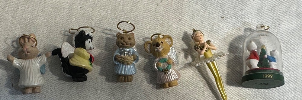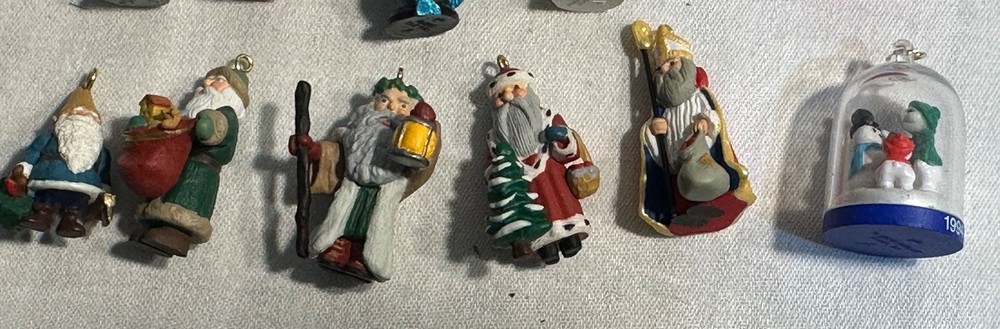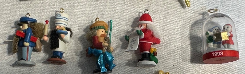 This lot of 17 various Hallmark miniature ornaments from the 1990s features small, multicolor ornaments perfect for Christmas decorations. These vintage ornaments are original Hallmark pieces with a Christmas theme, making them a nostalgic addition to any holiday collection. Each ornament is approximately 1 inch tall and comes from the 1990s, adding to their vintage charm. Ideal for adults looking to add a touch of Christmas nostalgia to their home decor. Does not have original boxes